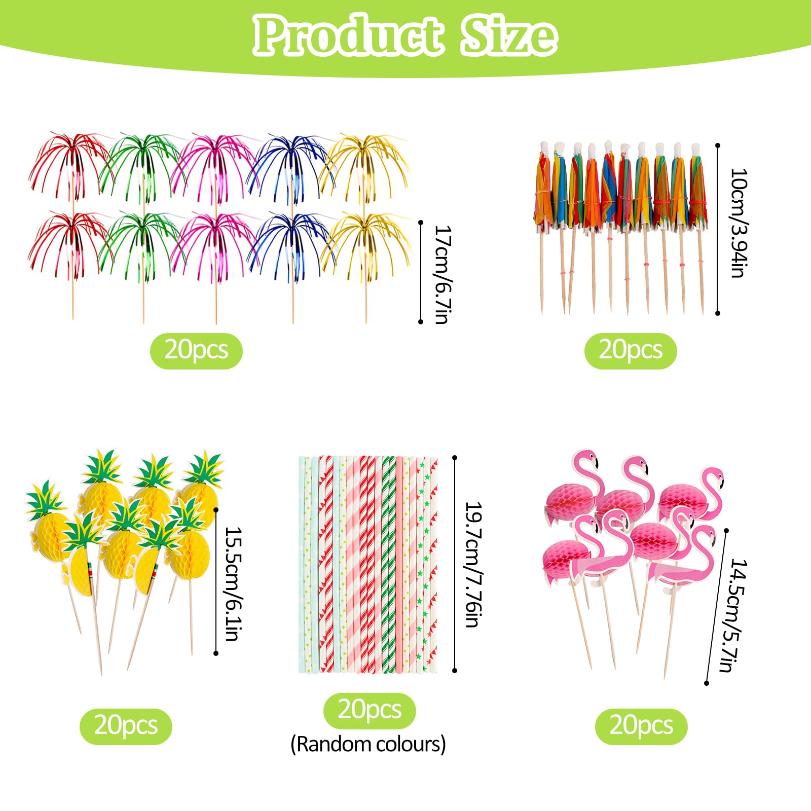 Mach deine nächste Party zum tropischen Erlebnis! Mit diesem 100-teiligen Cocktail Deko Set verwandelst du jeden Drink in ein buntes Kunstwerk. Enthalten sind süße Ananas- und Flamingo-Motive, bunte Schirmchen und praktische Spieße - alles was du für die perfekte Party-Stimmung brauchst. Die umweltfreundlichen Materialien aus Bambus und Papier sind nicht nur nachhaltig, sondern auch robust. Einfach in die Drinks stecken und schon fühlt sich jeder Gast wie auf einer Südsee-Insel! Perfekt für Sommerpartys, Hochzeiten oder Geburtstage. Deine Gäste werden begeistert sein!
