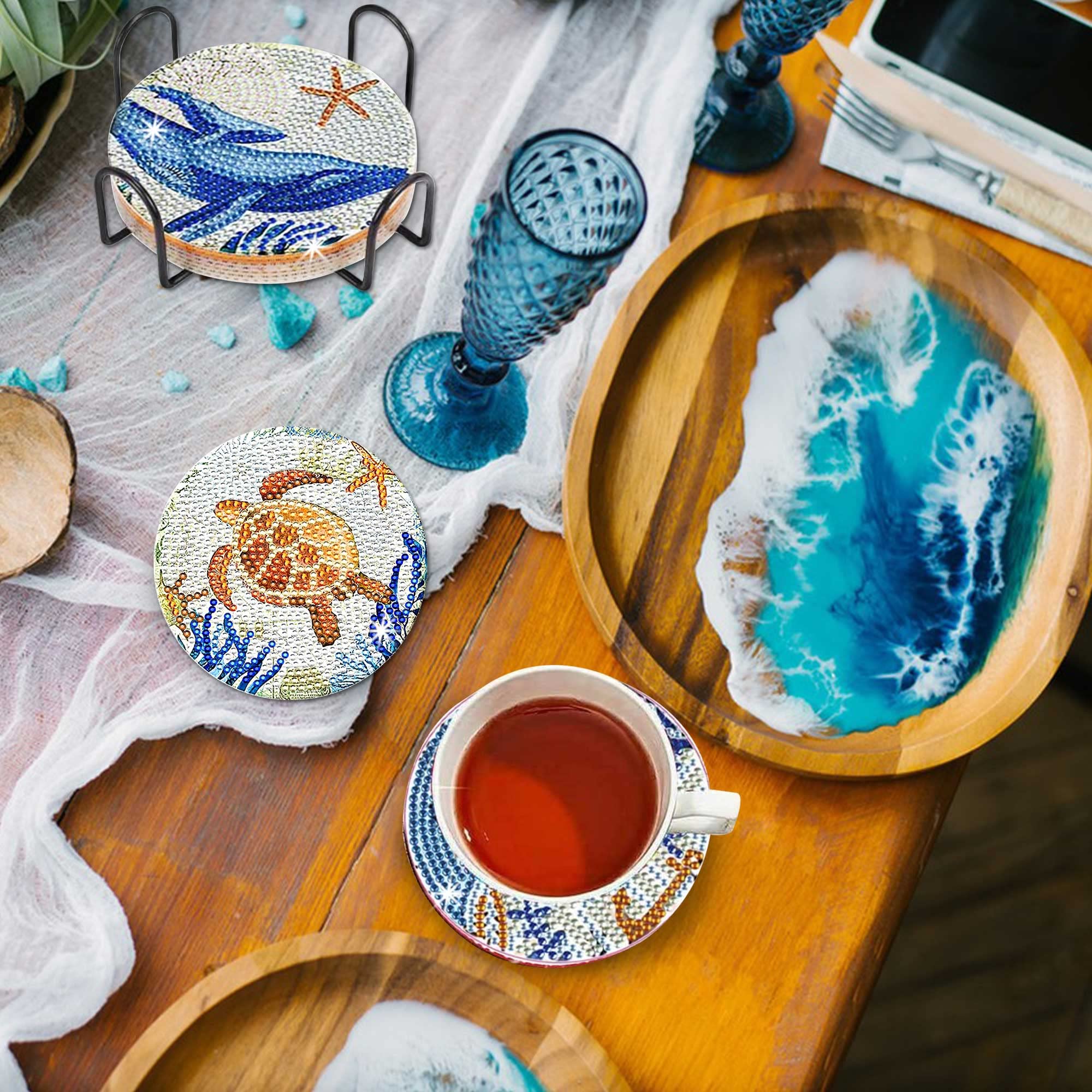 Diamond Painting Untersetzer Set - 10 Stück DIY Glasuntersetzer Mit Grüne Blätter Design
