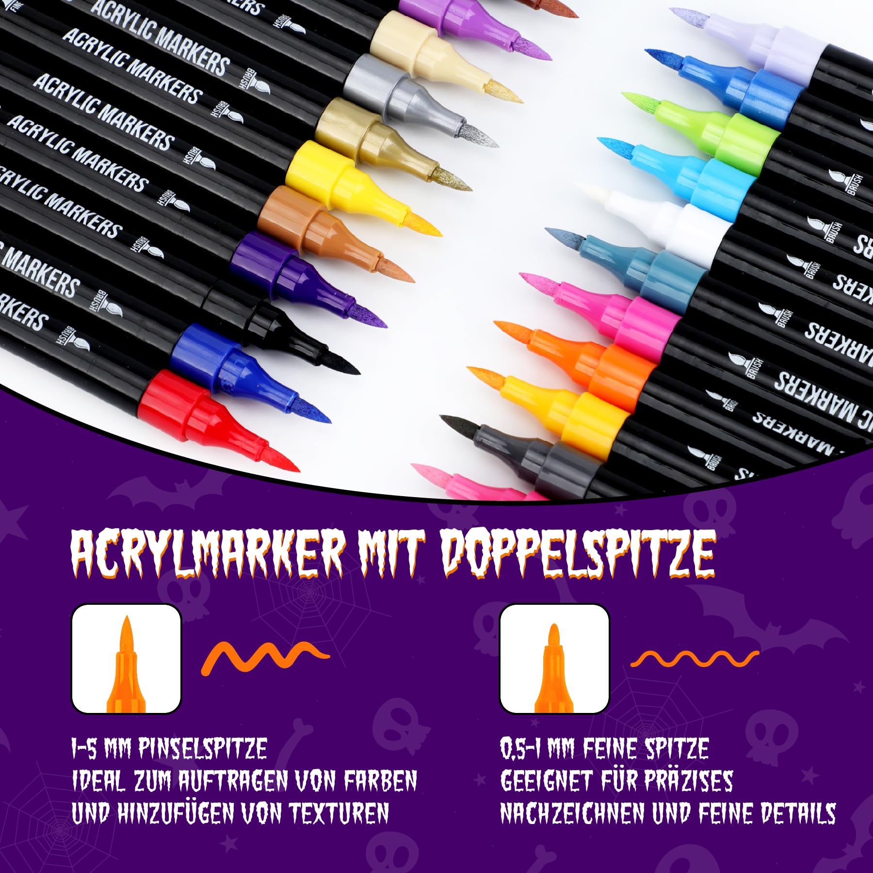 Acrylmarker Set 12 Stück - Doppelspitze Fein & Pinsel Für Stoff, Holz, Leinwand