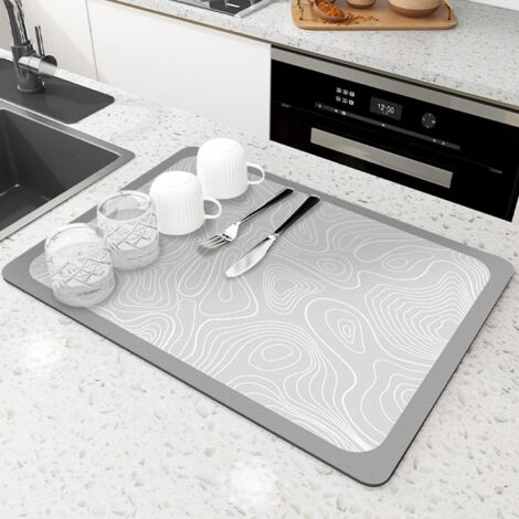 Kieselgur Untersetzer Wasserabsorbierend - 2 Stück Graue Abtropfmatten Für Küche & Bad