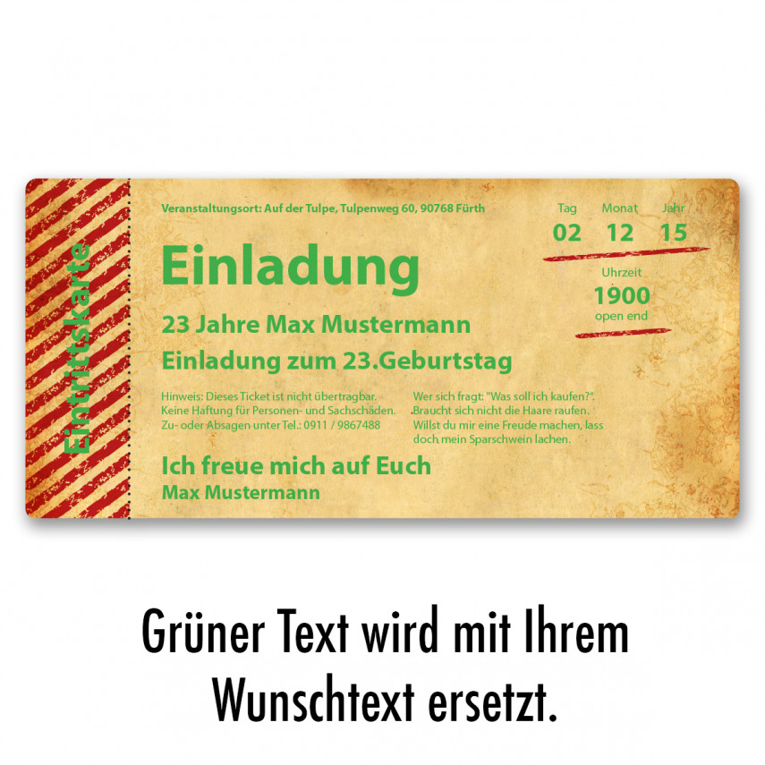 Geburtstagseinladungen Als Eintrittskarten - 10 Stück Im Grunge/Vintage-Look Mit Abriss