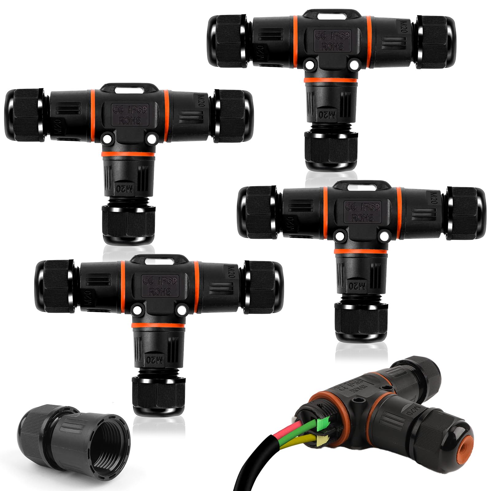 Diese wasserdichten Kabelverbinder sind echt praktisch! IP68 geschützt - absolut dicht gegen Wasser und Staub! Im 4er Set - genug für mehrere Projekte. T-Form als Abzweigdose - perfekt für Verteilungen. Für Kabeldurchmesser 3-15 mm - also für die meisten Anwendungen geeignet. 5-polig - ideal für Erdkabel und Stromleitungen. Bis 25A und 440V - richtig stark belastbar! Von -40°C bis +105°C - hält extreme Temperaturen aus. Ohne Werkzeug montierbar - einfach drehen und fertig! Mit Gummidichtringen - sorgt für perfekten Schutz. Perfekt für Außenbeleuchtung, Garten, Straßenlaternen oder Unterwasser-Anwendungen. Aus UV-beständigem ABS/PVC - hält auch der Sonne stand. Einfach Kabel einführen, drehen, fertig - deine Verbindung ist wasserdicht! Ob Profi oder Heimwerker - mit diesen Teilen machst du nichts falsch!