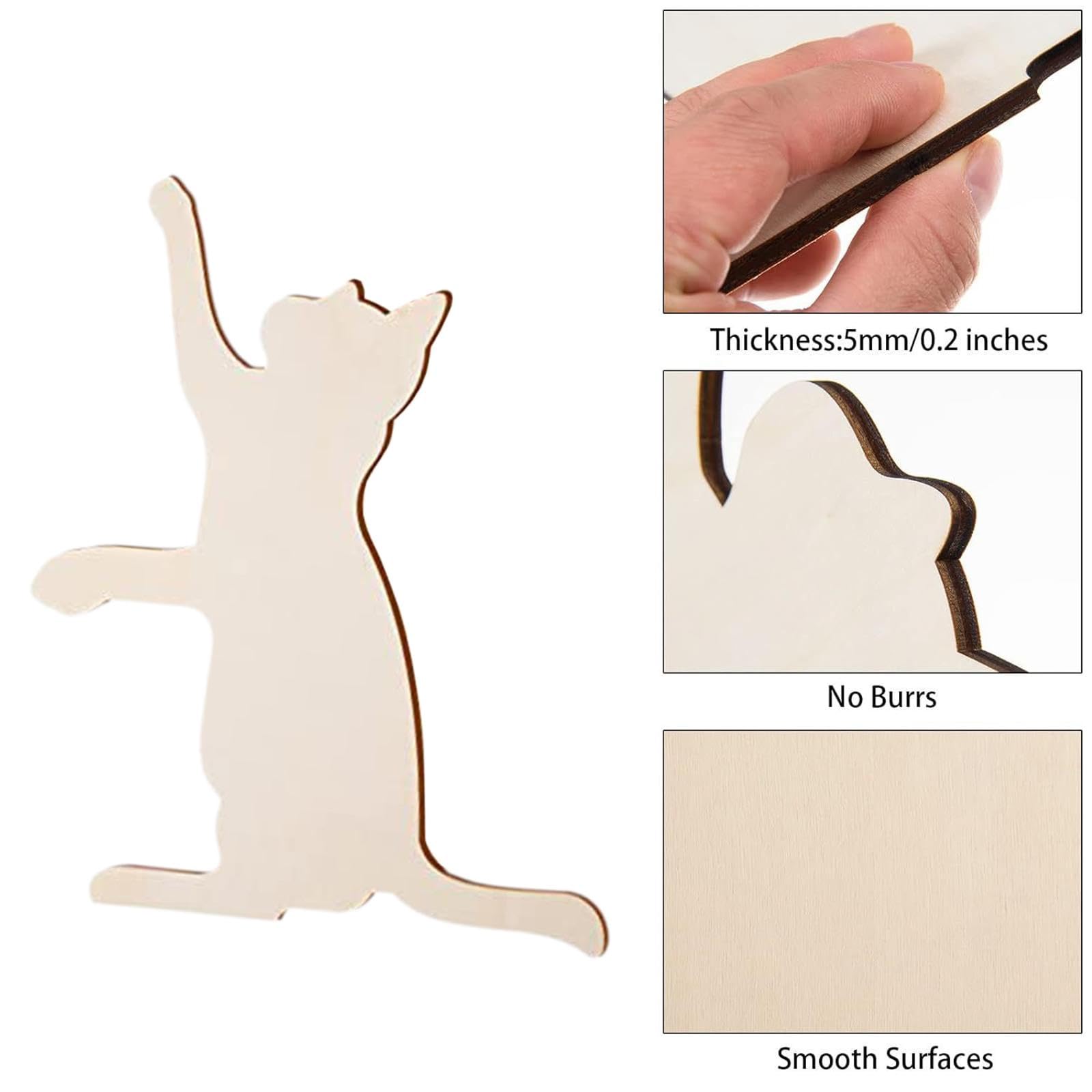 FRCOLOR 100 Stück Katzen Holzfiguren Zum Bemalen - DIY Bastelset Für Weihnachtsdekoration