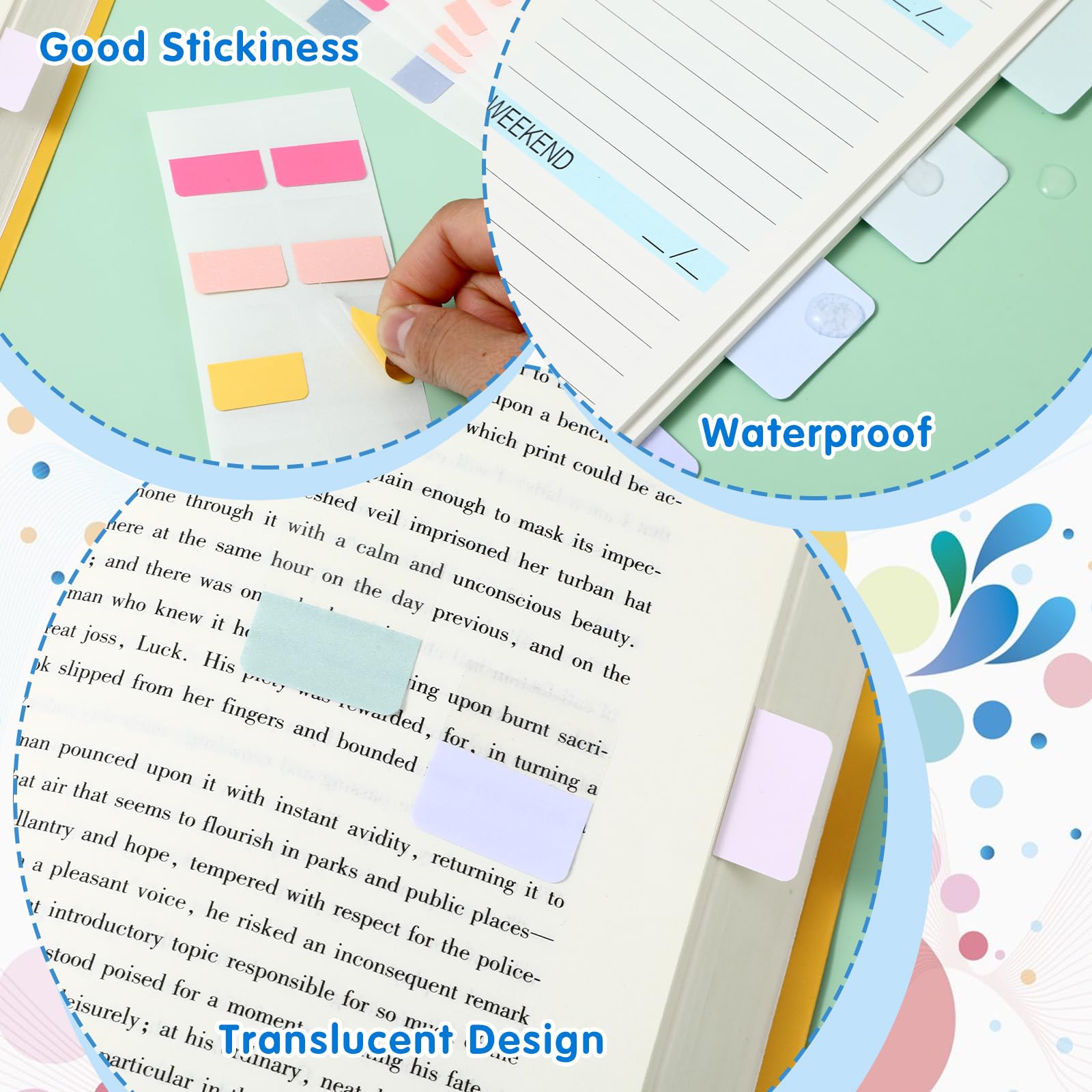 Ordnungs-Chaos ade! Mit diesen 720 Kleberegisterkarten von Classicseali bringt ihr Struktur in eure Bücher, Ordner und Dokumente. Drei verschiedene Farbstile - Macaron, Hell und Retro - damit für jeden Geschmack was dabei ist.\n\nAus hochwertigem PET-Material, das eine glatte Oberfläche bietet. Super zum Beschriften mit Gelstiften, Kugelschreibern oder Bleistiften. Und das Beste: Sie hinterlassen keine Klebereste und beschädigen das Papier nicht!\n\nDas transparente Design ist genial - ihr könnt trotzdem alles lesen, was darunter steht. Perfekt zum Markieren wichtiger Stellen in Büchern, zum Organisieren von Aktenordnern oder zum Kennzeichnen von Terminen im Kalender.\n\nMit 720 Stück im Set habt ihr für lange Zeit ausgesorgt. Ob für die Uni, die Schule, das Büro oder zu Hause - diese Tab Marker sind unverzichtbare Helfer für alle, die gerne Ordnung halten.\n\nEinfach abziehen, an die gewünschte Stelle kleben und beschriften. Wenn ihr sie umkleben wollt, geht das problemlos - der Kleber hält gut, lässt sich aber rückstandslos entfernen.\n\nIn der praktischen Verpackung sind sie auch ein tolles Geschenk für ordnungsliebende Freunde oder Kollegen. Macht das Lernen und Arbeiten einfacher und organisierter - probiert es aus!