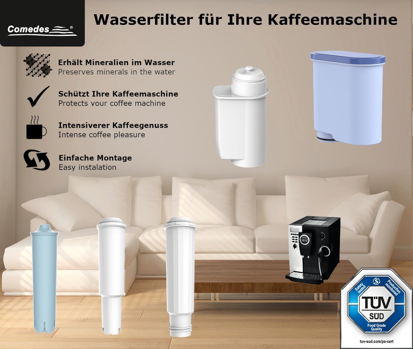 Für perfekten Kaffeegenuss! Diese hochwertigen Ersatzfilter passen perfekt für Jura Kaffeemaschinen der Modelle Blue 67007, 71311 und 71312. 4 Stück im Set - du bist lange versorgt! Einfach zu wechseln und sorgen für kristallklares Wasser ohne unerwünschte Geschmacksstoffe. Dein Kaffee schmeckt wieder wie frisch aus der Rösterei. Das robuste Design garantiert lange Haltbarkeit und zuverlässige Leistung. Gib deiner Kaffeemaschine die Pflege die sie verdient und genieße jeden Tag perfekten Kaffeegeschmack. Ein kleiner Wechsel mit großer Wirkung für deinen Kaffeegenuss!