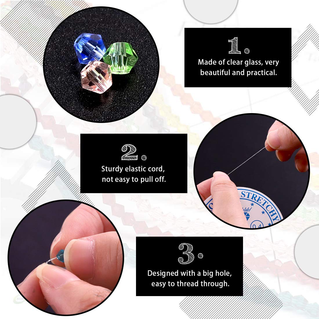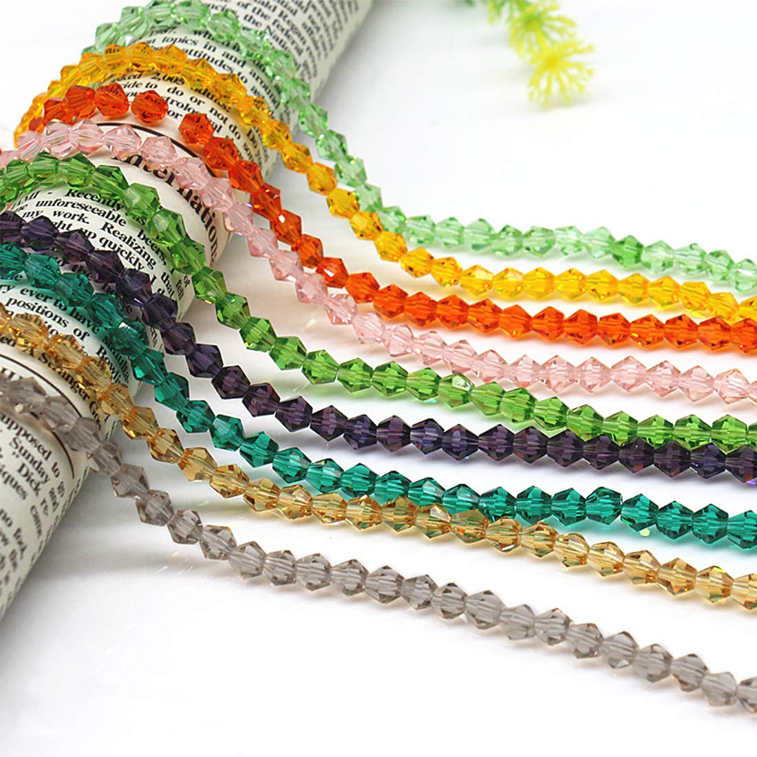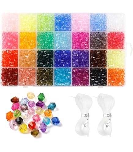 Keadic 1800 Stück Kristallperlen Set - 15 Farben 4mm Doppelkegel Mit Elastischen Kordeln