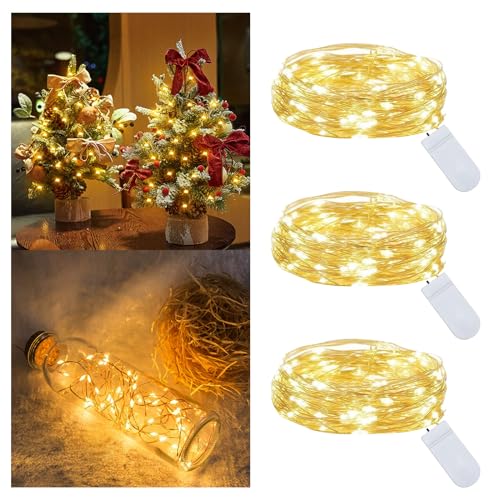 Batteriebetrieben mit 3x LR44-Batterien (inklusive 9 Ersatzbatterien). Bis zu 30 Stunden Leuchtdauer! Mit praktischem Ein/Aus-Schalter. Wasserdichter Kupferdraht - ideal auch für Outdoor-Deko.