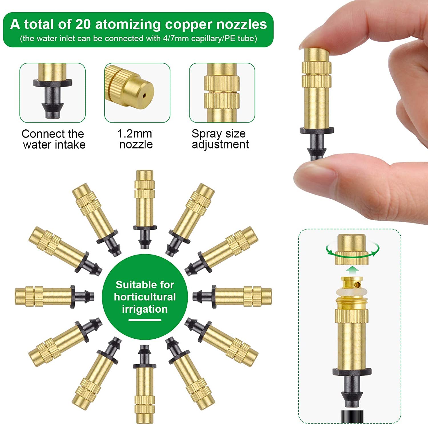 HUAZIZ 20 Stück Messing Sprühdüsen 0,4mm - Garten Bewässerung & Kühlung Nebeldüsen
