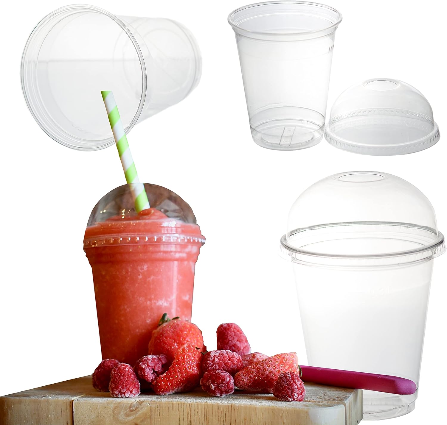 Perfekt für dein Café oder Imbiss! Diese 50 PET-Becher (400ml) mit Deckel sind glasklar, bruchfest und lebensmittelecht. Inklusive Deckel mit Kreuzschlitz - auslaufsicher und praktisch. Ideal für Smoothies, Cocktails, Eistees, Desserts und mehr. Aus EU-Produktion - konform mit Lebensmittelrichtlinien. Höhe: 125mm, Durchmesser: 95mm. Viel robuster als PP-Becher. Mit Füllstrich für perfekte Portionierung. Dein sicheres Becher-Sortiment für den professionellen Einsatz!