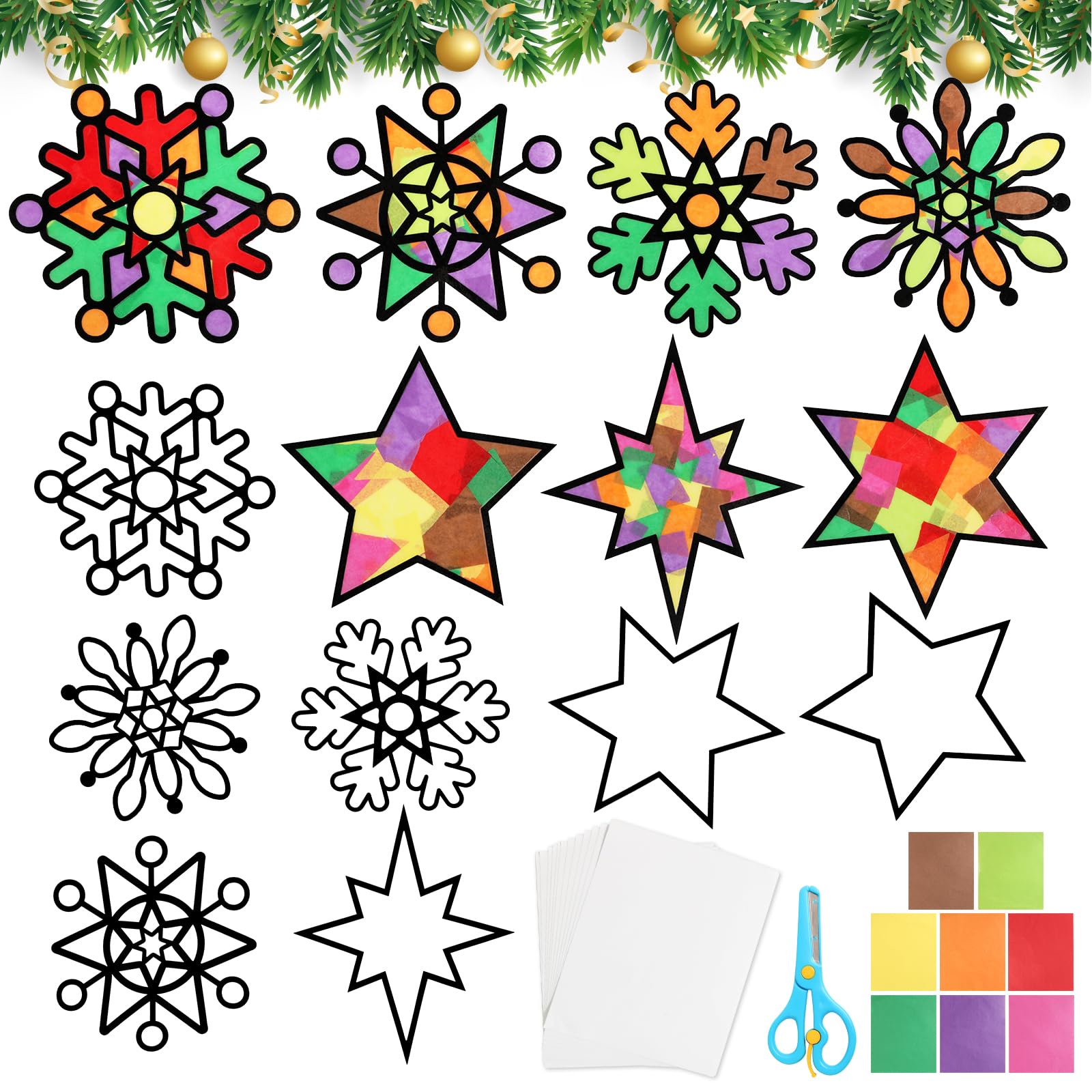 CREATCABIN Weihnachts-Glasaufkleber Set - 24 Stück PVC Silhouetten Für Einmachgläser & Fenster