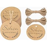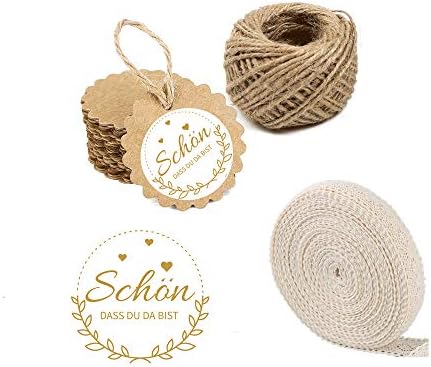 SCHÖN DASS DU DA BIST Geschenkanhänger | 50 Stück Rund Mit Juteschnur | Weißes Kraftpapier Für Hochzeit & Geburtstag