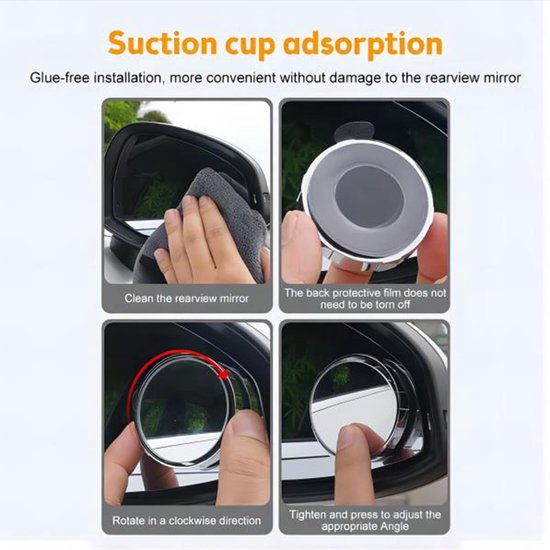Endlich den toten Winkel im Blick! Diese Blind Spot Spiegel mit Saugnapf sind super praktisch für mehr Sicherheit beim Fahren. Im 2er Set für beide Seitenspiegel. Mit 55mm Durchmesser und konvexer Form für maximales Sichtfeld. 360° drehbar - einfach den perfekten Winkel einstellen! Aus hochwertigem Spiegelglas und ABS-Material, wasserabweisend beschichtet. Einfache Installation ohne Kleber - einfach Saugnapf auf den sauberen Spiegel drücken und festziehen. Passt für die meisten Autos, SUVs, Trucks und Wohnmobile. Besonders hilfreich beim Spurwechsel, Einfahren auf die Autobahn oder Rückwärtsfahren. Mehr Sicherheit für dich und deine Mitfahrer - einfach montieren und sorgenfreier fahren!