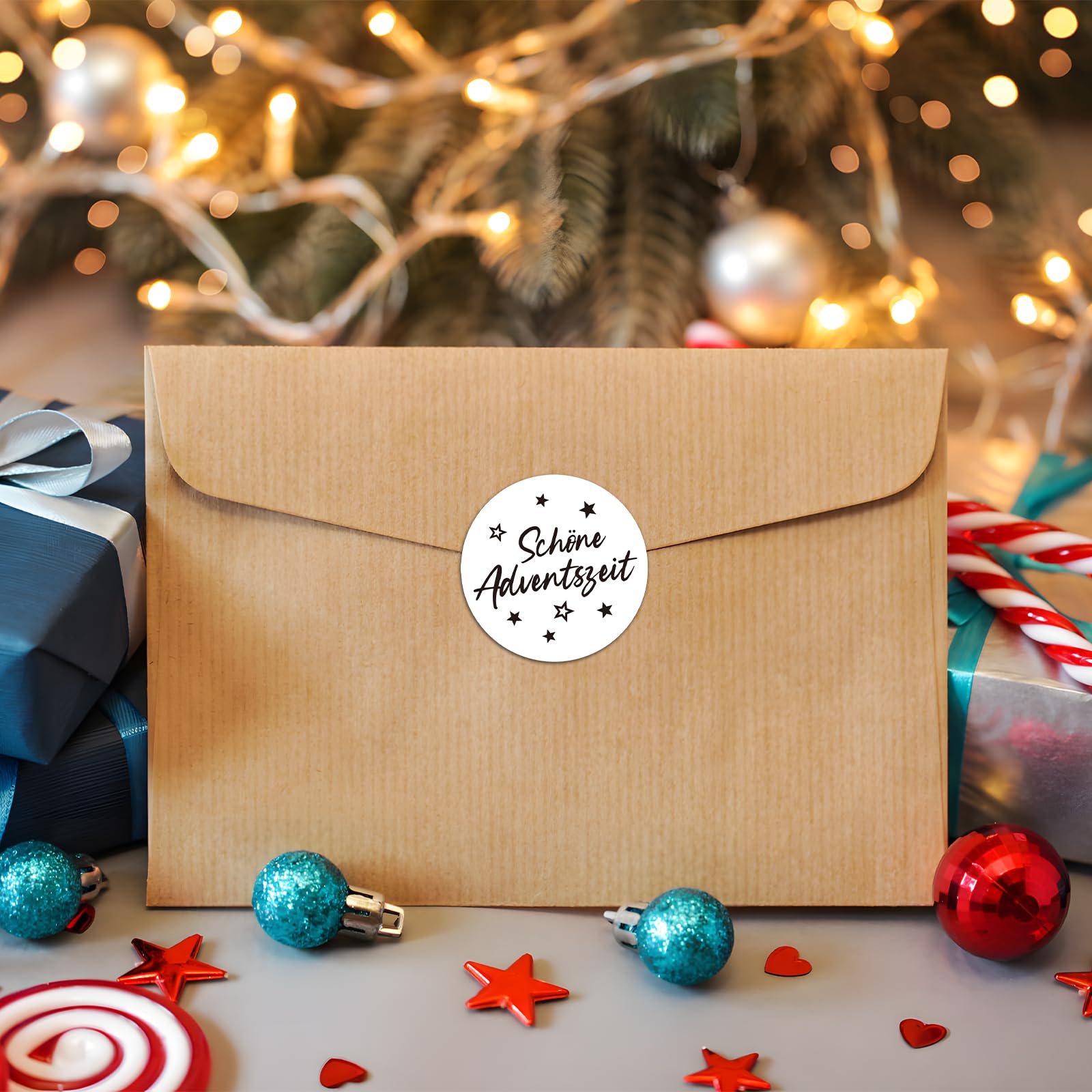 Mach deine Weihnachtsgeschenke dieses Jahr besonders festlich! Diese 48 runden Aufkleber mit der Aufschrift 'Schöne Adventszeit' sind perfekt zum Verschließen von Geschenktüten, Karten und Umschlägen. Jeder Aufkleber hat 4cm Durchmesser und zeigt viele kleine Sterne auf weißem Hintergrund. Aus stabilem Kraftpapier gefertigt, reißen sie nicht so leicht. Die Selbstklebefunktion macht das Anbringen super einfach - einfach Schutzfolie abziehen und aufkleben. Perfekt für Weihnachtsbäckerei-Verpackungen, Adventskalender oder einfach als Deko für Fenster und Spiegel. Die schwarz-weiße Gestaltung ist zeitlos schön und passt zu jedem Geschenkpapier. Eine Packung reicht für alle Weihnachtsgeschenke!