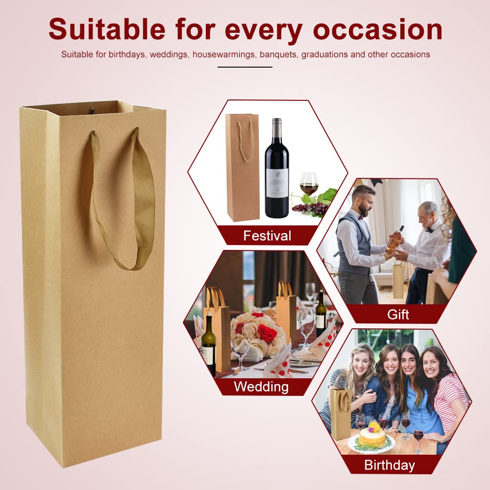 WANDGU Wein Geschenktüten 20 Stück - Schwarze Kraftpapiertüten Mit Griff Für Weinflaschen