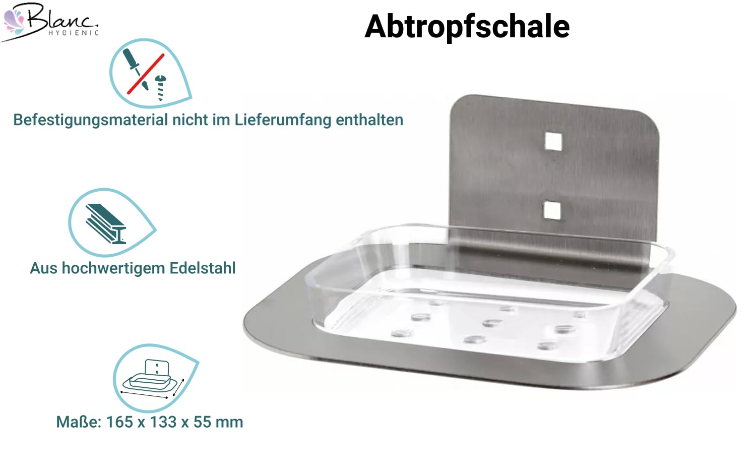 Schluss mit lästigen Seifenflecken! Diese praktischen Tropfschalen für Seifenspender halten dein Badezimmer sauber und ordentlich. Im Set bekommst du zwei Tabletts aus robustem ABS-Kunststoff - perfekt um tropfende Seifenspender aufzufangen. Die kompakten Maße (18x13x10cm) passen unter die meisten handelsüblichen Seifenspender. Einfache Wandmontage - bohren, dübeln, festschrauben, fertig! Die glatten Kanten und Oberflächen sind sicher in der Anwendung und super leicht zu reinigen. Universelles Design passt zu verschiedenen Flüssigkeitsbehältern - nicht nur für Seife. Ideal für zu Hause, Büros, Hotels oder Gäste-WCs. Verhindert unschöne Kalk- und Seifenränder auf Waschbecken und Möbeln. Endlich kein lästiges Putzen mehr nach dem Händewaschen. Das langlebige Material hält auch bei häufigem Gebrauch problemlos stand. Mach dein Bad zur sauberen Wohlfühloase - ohne tropfende Seifenspender!