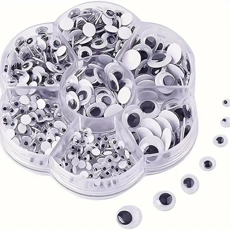 Boah, was für ein mega Bastelset! 1150 Wackelaugen in allen möglichen Größen - von winzigen 5mm bis zu großen 25mm Augen. Rund und oval, in Schwarz, Weiß und bunten Farben. Die kleben super einfach auf alles drauf und wackeln dann lustig hin und her! Perfekt für selbstgemachte Puppen, Stofftiere, Karten, Scrapbooking oder um Gemüse und Obst lustige Gesichter zu verpassen. Kommt in einer praktischen Aufbewahrungsbox, damit nichts verloren geht. Aber Achtung: Nicht für Kinder unter 3 Jahren, die Teile sind klein! Unter Aufsicht macht's aber doppelt Spaß. Ob für den Kindergarten, die Schule oder daheim - damit wird jedes Bastelprojekt zum echten Hingucker!