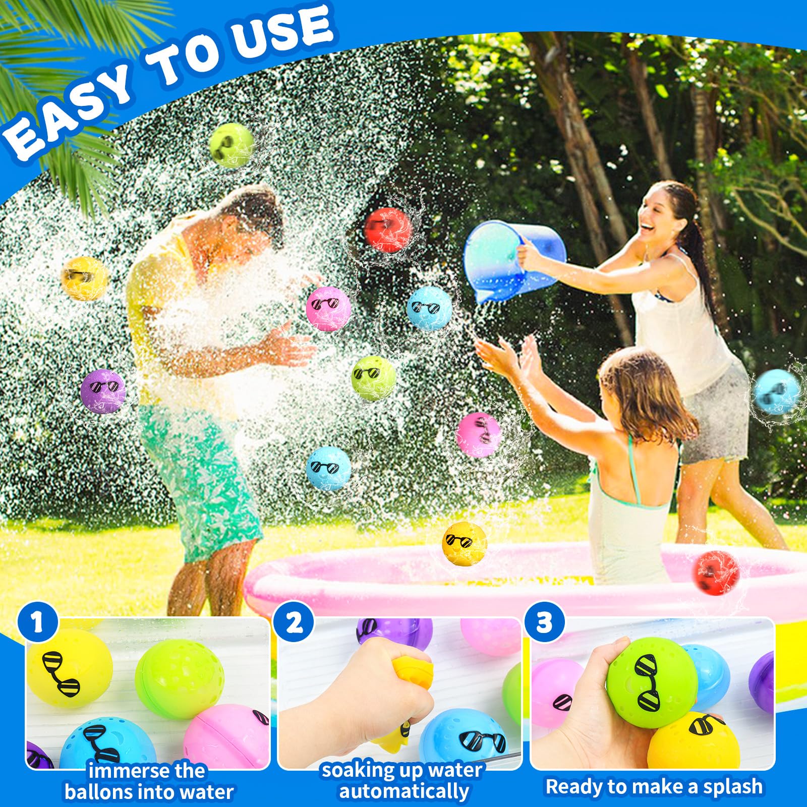 AMLI Wasserbomben Wiederverwendbar - 12 Stück Splash Balls Für Pool & Wasserschlachten