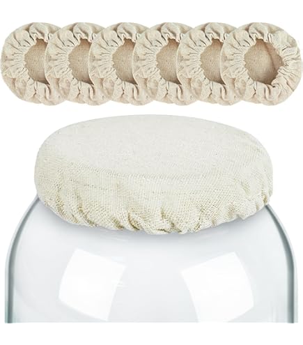 Perfekt für deine Fermentations-Projekte! Diese 6 wiederverwendbaren Stoffabdeckungen aus Baumwolle sind ideal für Sauerteig, Marmeladen, eingelegtes Gemüse und Obst. Mit ca. 9x9cm Größe passen sie auf die meisten Standard- und Weithalsgläser. Das atmungsaktive Material ermöglicht Gärung ohne Schimmelbildung - die Luft kann zirkulieren, aber Staub und Insekten bleiben draußen. Einfach über die Glasöffnung stülpen und mit dem Gummiband fixieren. Spülmaschinenfest und immer wieder verwendbar. Macht das Fermentieren sauberer und einfacher. Ob für Brotbacken, Gemüse einlegen oder Vorratshaltung - mit diesen Abdeckungen gelingt jedes Gärprojekt!
