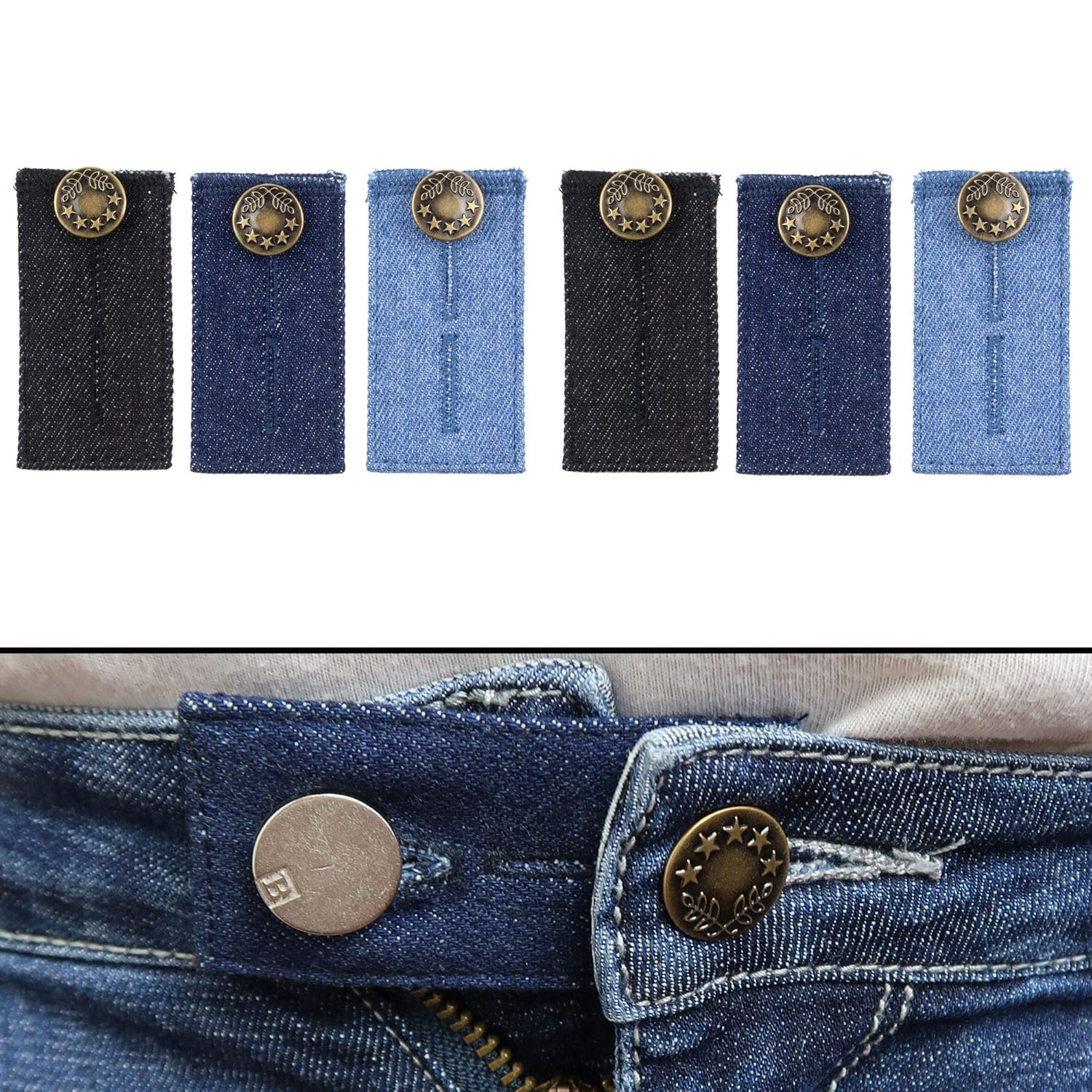 Passt zu allen Hosen mit Knopfverschluss - Jeans, Röcke, Umstandshosen. Praktisch und fast unsichtbar. Nie wieder 'zu eng'!
