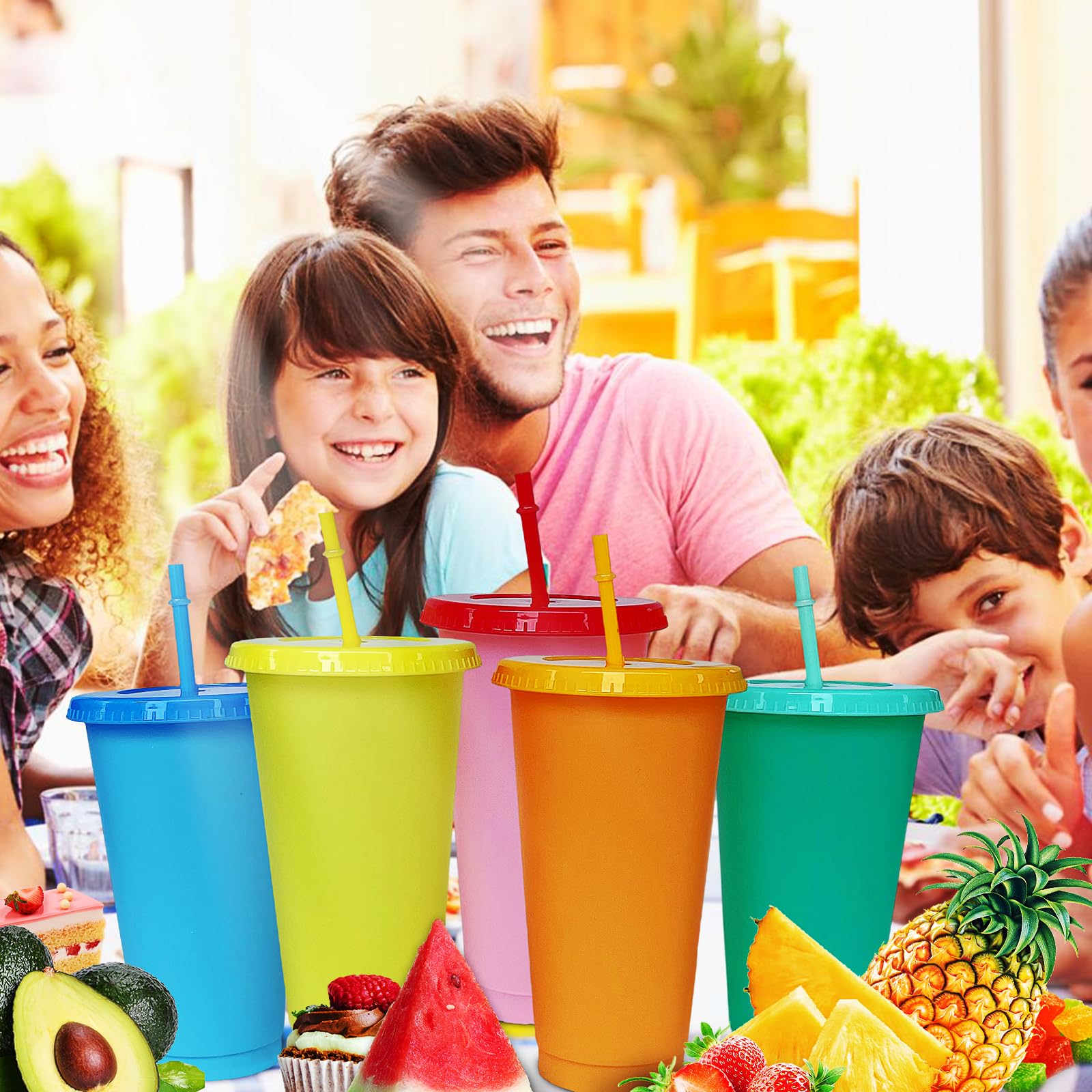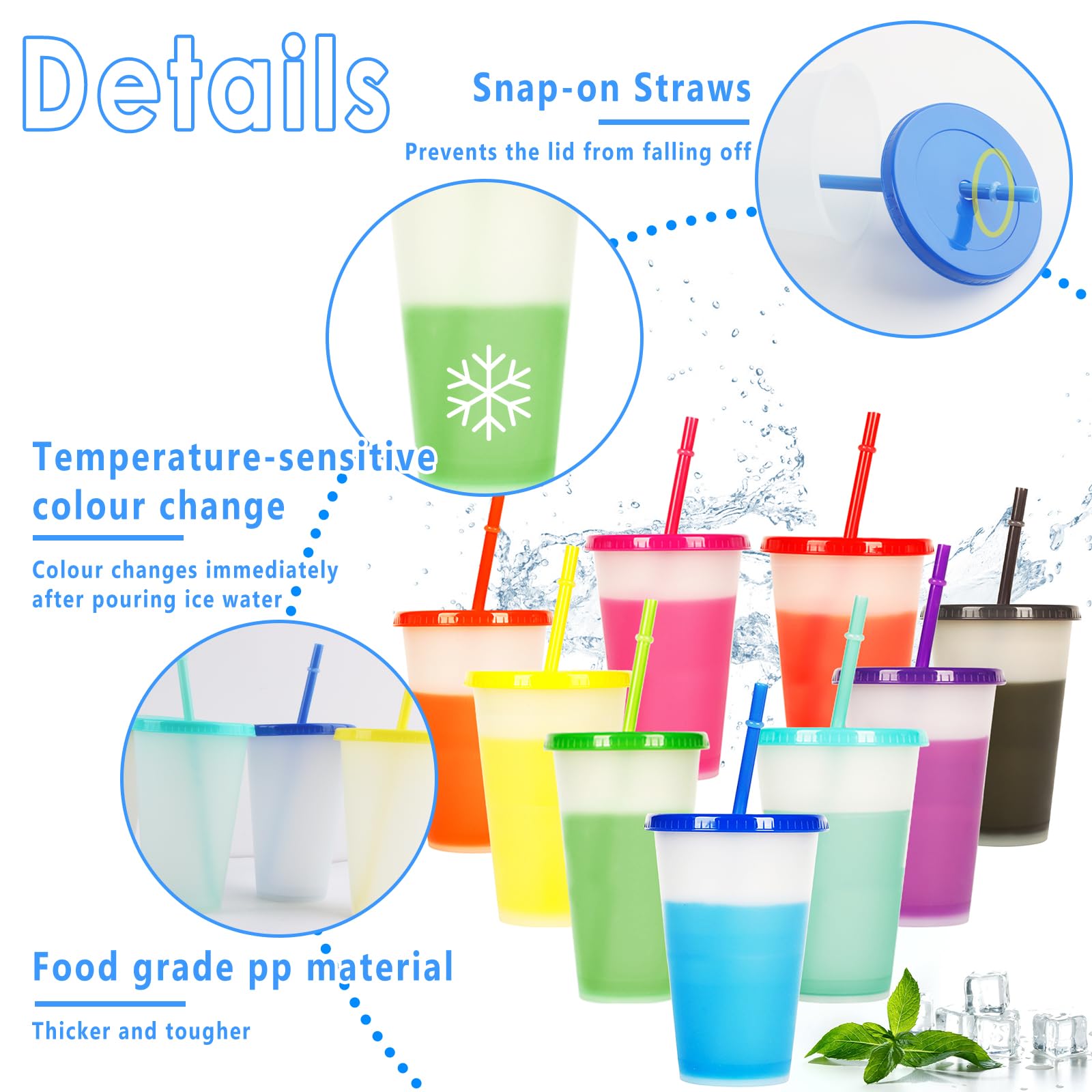 Dellyy 9 Stück Trinkbecher Mit Strohhalm - Farbwechsel Becher 480ml BPA-frei