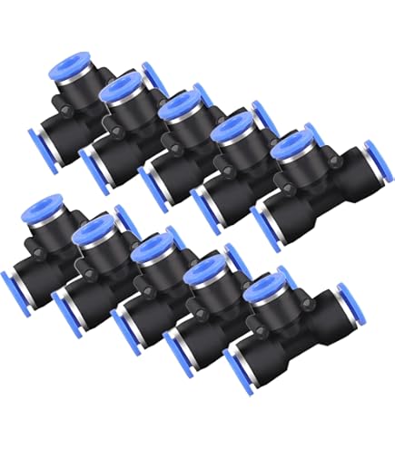 10x Pneumatische T-Stück Verbinder 8mm Auf 6mm - Kunststoff Push-to-Connect