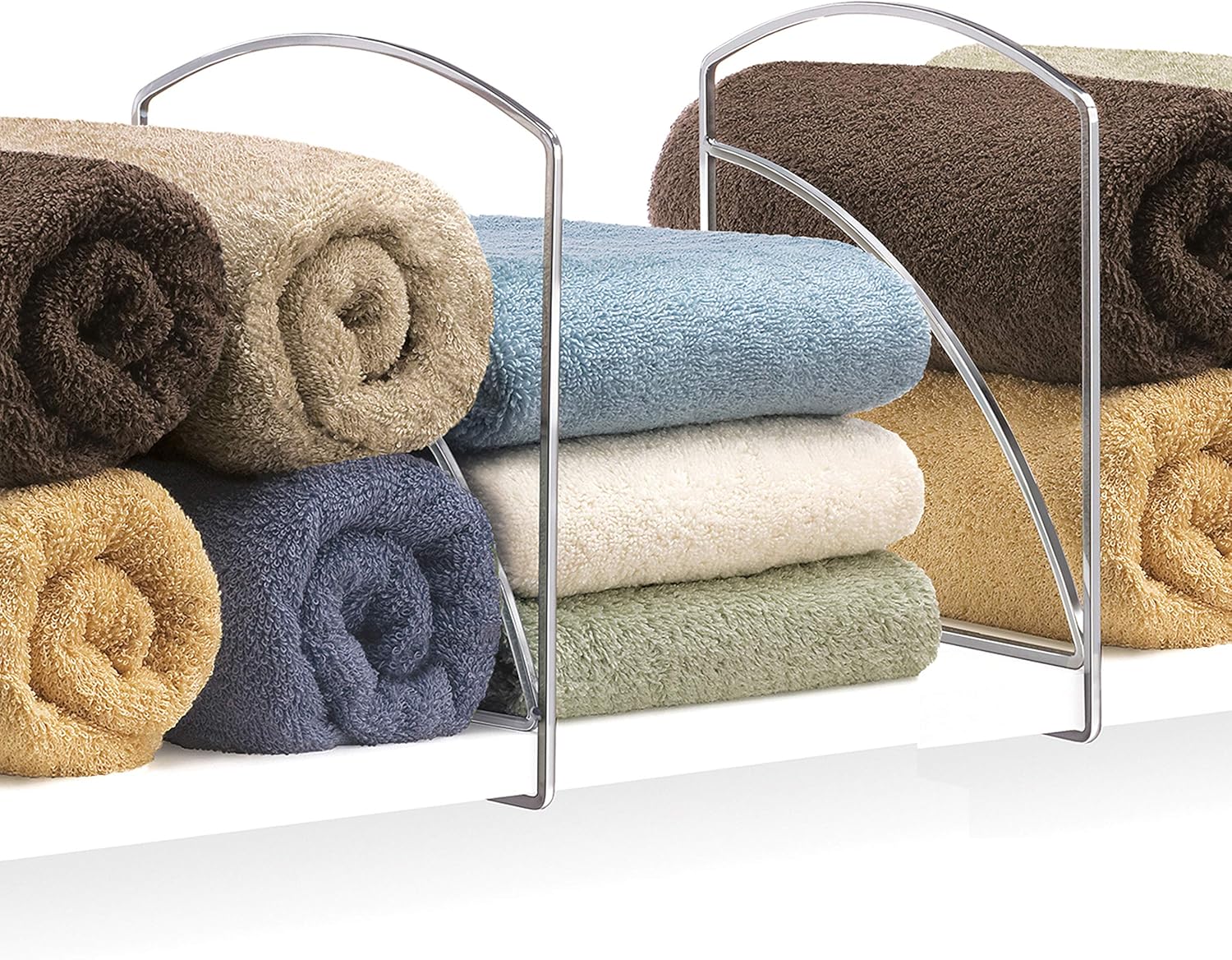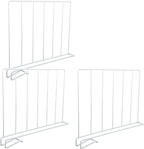 Endlich Ordnung in den Regalen! Diese 2 praktischen Regaltrenner aus Stahl helfen dir, alles schön geordnet zu halten. Maße: 5,4cm breit, 21,3cm lang, 23,8cm hoch. Einfach über die Regalkante schieben - passt auf Regale bis 2,2cm Dicke. Hält Pullover, Handtücher, Taschen oder Geschirr perfekt getrennt. Aus epoxid-beschichtetem Stahl der rostfrei ist. Super für Küche, Vorratsschrank oder Kleiderschrank. Keine Montage nötig - einfach reinschieben und sofort mehr Ordnung genießen. Mach das Chaos in deinen Regalen endlich den Garaus!
