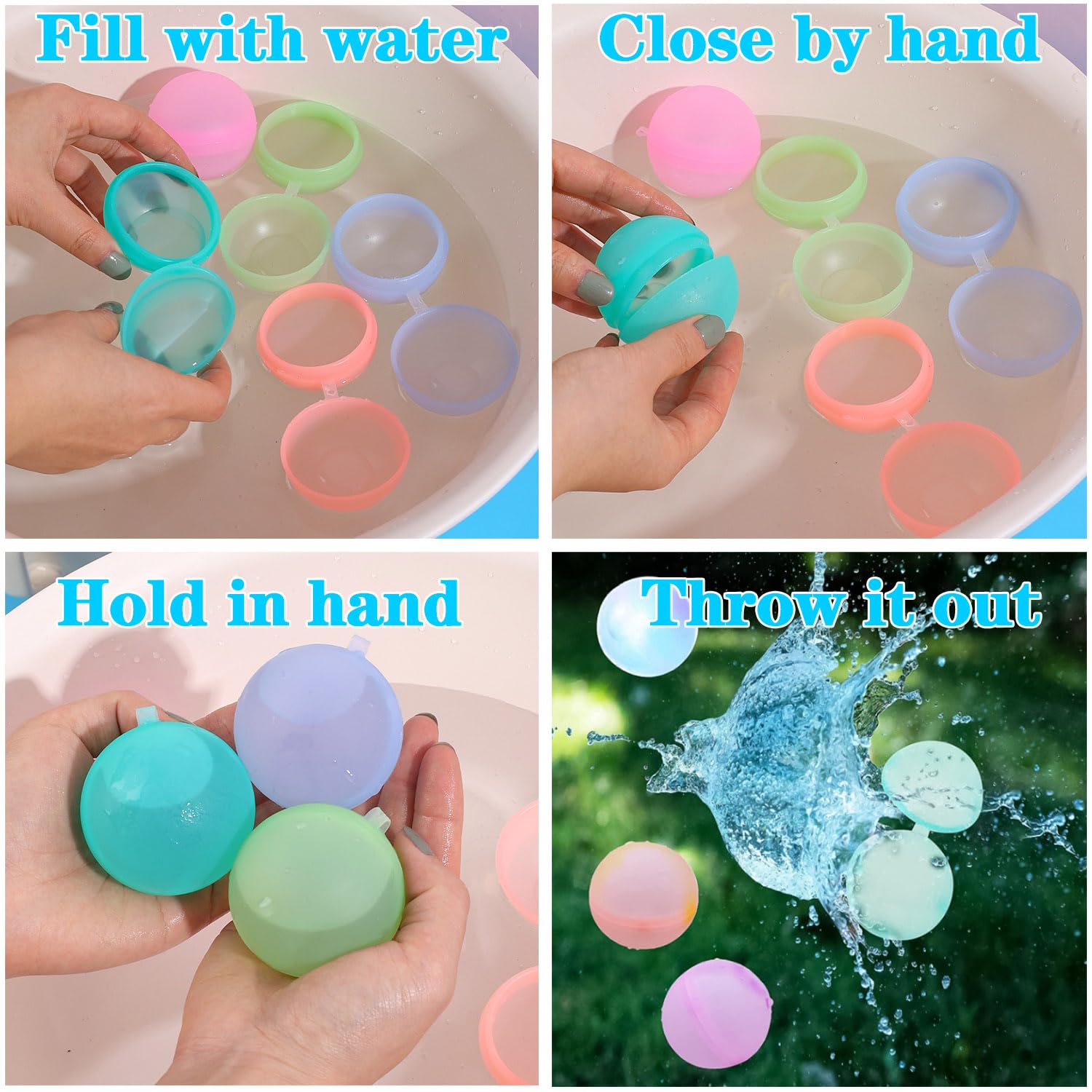 CZAKOMIX 12 Stücke Silikon Wasserbomben - Wiederverwendbar & Selbstschließend Für Wasserschlachten
