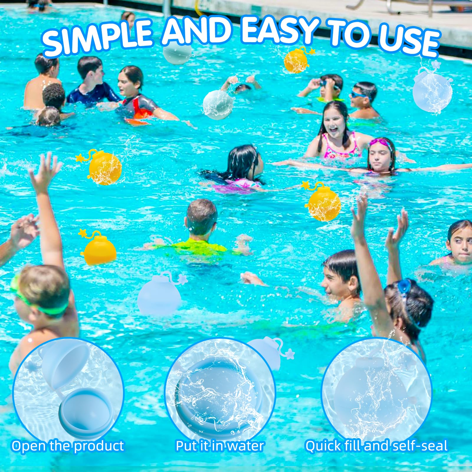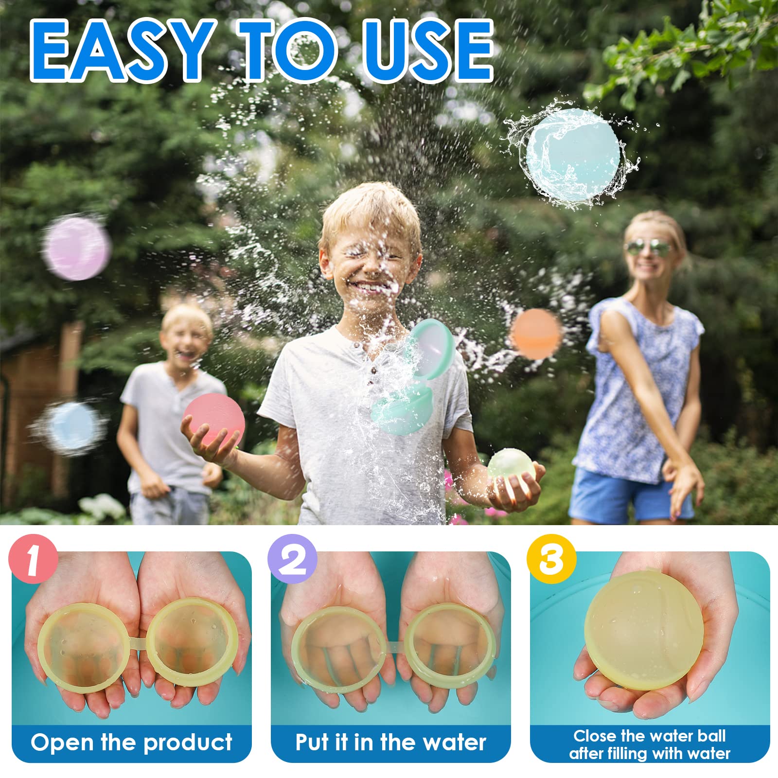 Wasserschlacht ohne Ende! Diese 12 bunten Silikon-Wasserbomben gehen nicht kaputt und machen immer wieder Spaß. Einfach ins Wasser tauchen, zusammendrücken - schon sind sie gefüllt und dicht! Kein lästiges Knoten mehr. Perfekt für Gartenpartys, Pooltage oder Familienfeste. Nach dem Spiel abspülen, trocknen lassen und im mitgelieferten Netz verstauen. Weiches Silikon, das nicht reißt - sicher auch für kleinere Kinder. Bringt Sommerfeeling in jeden Garten! Ideal für Geburtstage, Schulfeiern oder einfach so - für unvergesslichen Wasserspaß!