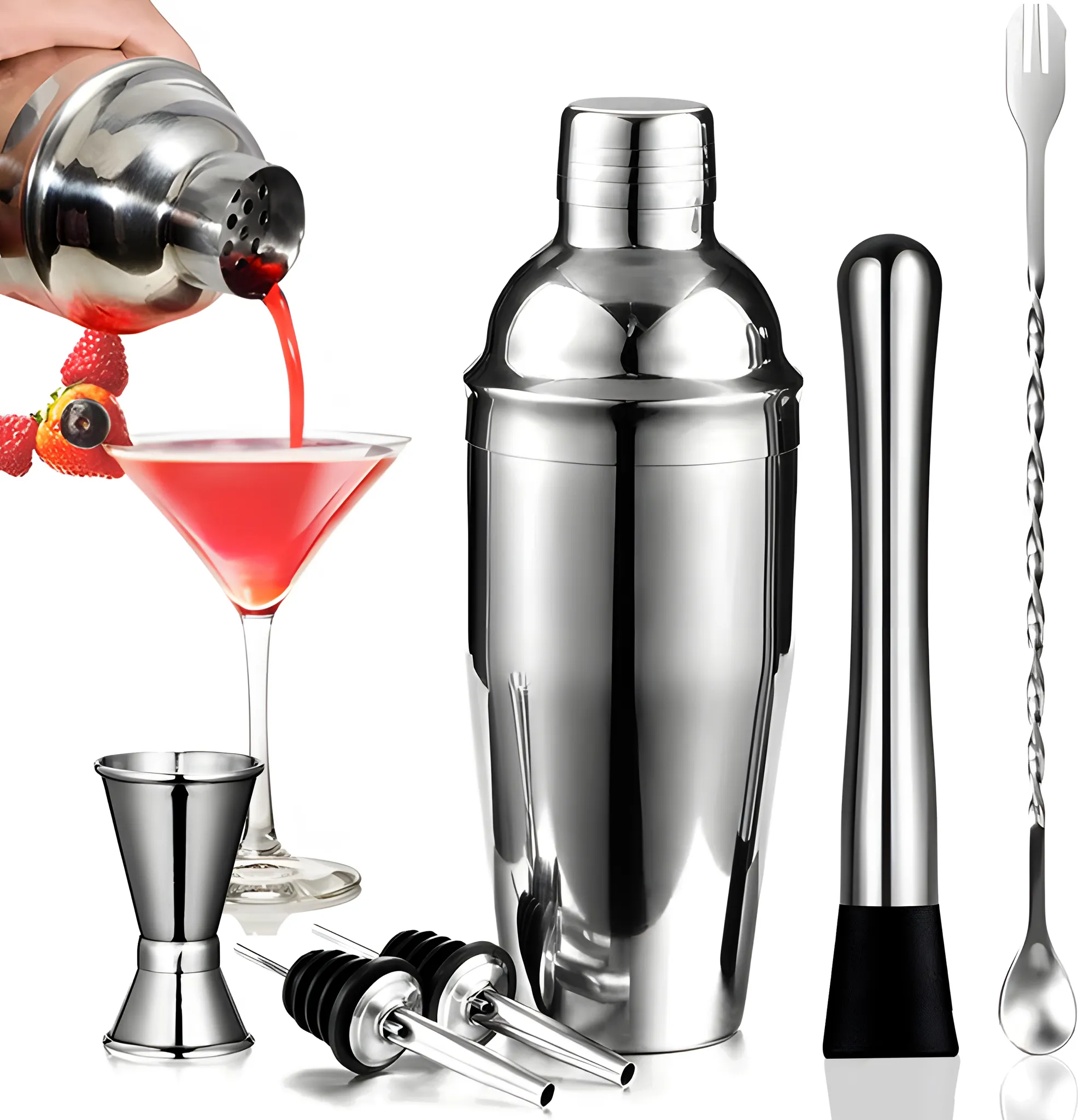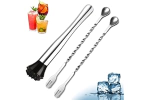 Mix like a pro! Dieses Cocktail Stößel Set aus hochwertigem Edelstahl 304 und Nylon ist ein Muss für jede Home-Bar. Mit 25cm Länge perfect zum Zerstampfen von Früchten, Kräutern und Eis für die perfekten Cocktails. Komplett BPA-frei, rostfrei und lebensmittelecht - also absolut sicher in der Anwendung. Der gerillte Nylonkopf zerkleinert problemlos Zitronen, Minze, Erdbeeren und Vanille ohne Rückstände. Im Set enthalten: 1 Cocktail-Stößel und 1 Rührlöffel - alles, was du für professionelle Cocktails brauchst. Perfekt für Mojitos, Caipirinhas, Long Island Iced Tea und viele andere Drinks. Ob für die Hausbar, Party, Restaurant oder Bar - mit diesem Set hebst du deine Mixkünste auf das nächste Level. Einfach Früchte und Kräuter in das Glas, stampfen und genießen - mehr braucht es nicht für den perfekten Drink!