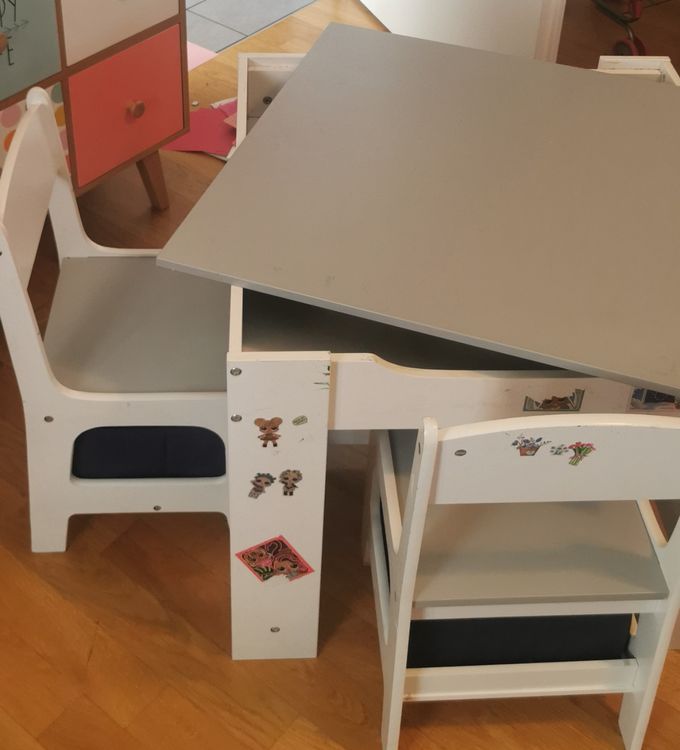 Der ultimative Spieltisch für dein Kind! Mit 2 Hockern und 4 austauschbaren Platten: Stecktafel, Maltafel, Whiteboard und robuste Tischplatte. Verstellbare Aluminium-Stützen von 0-45 Grad - perfekt für gesunde Haltung. Kippsicher mit Sicherheitsverschluss - nur für Erwachsene bedienbar. Trägt bis 60kg - super stabil. Mit Stauraum für Stifte, Bücher und Spielzeug. Aus 12mm starkem Material - hält auch wildem Spiel stand. Für Kinder von 3-7 Jahren. Schadstofffrei und speichelfest - alles geprüft. Macht Ordnung und fördert Kreativität! Einfach aufbauen und years of fun genießen! Dein Kind wird es lieben!