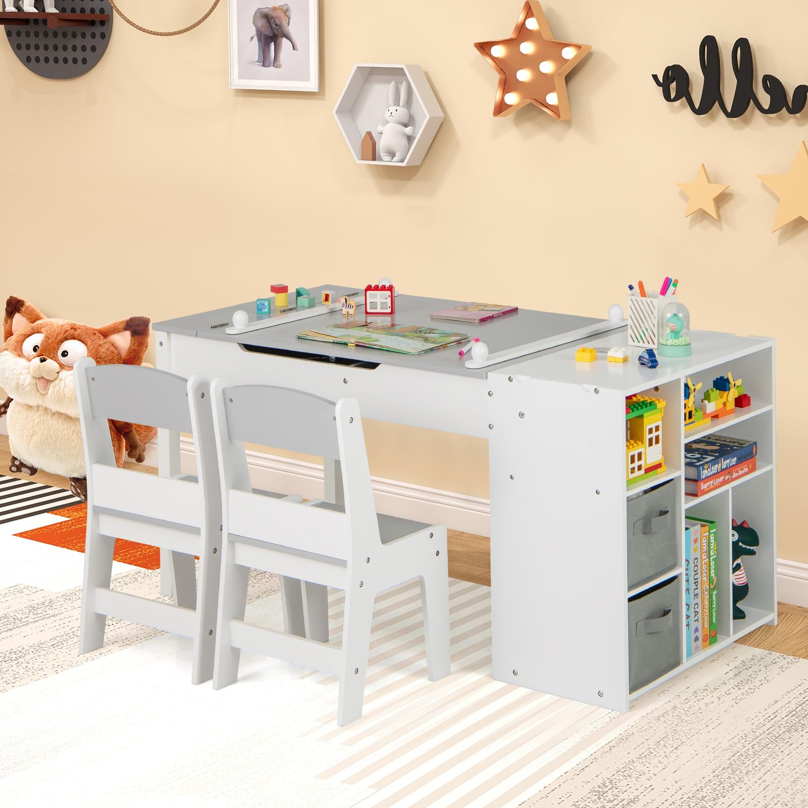 Kindertisch Mit 2 Stühlen - 4 Wechselplatten Verstellbar & Kippsicher Ab 3 Jahre