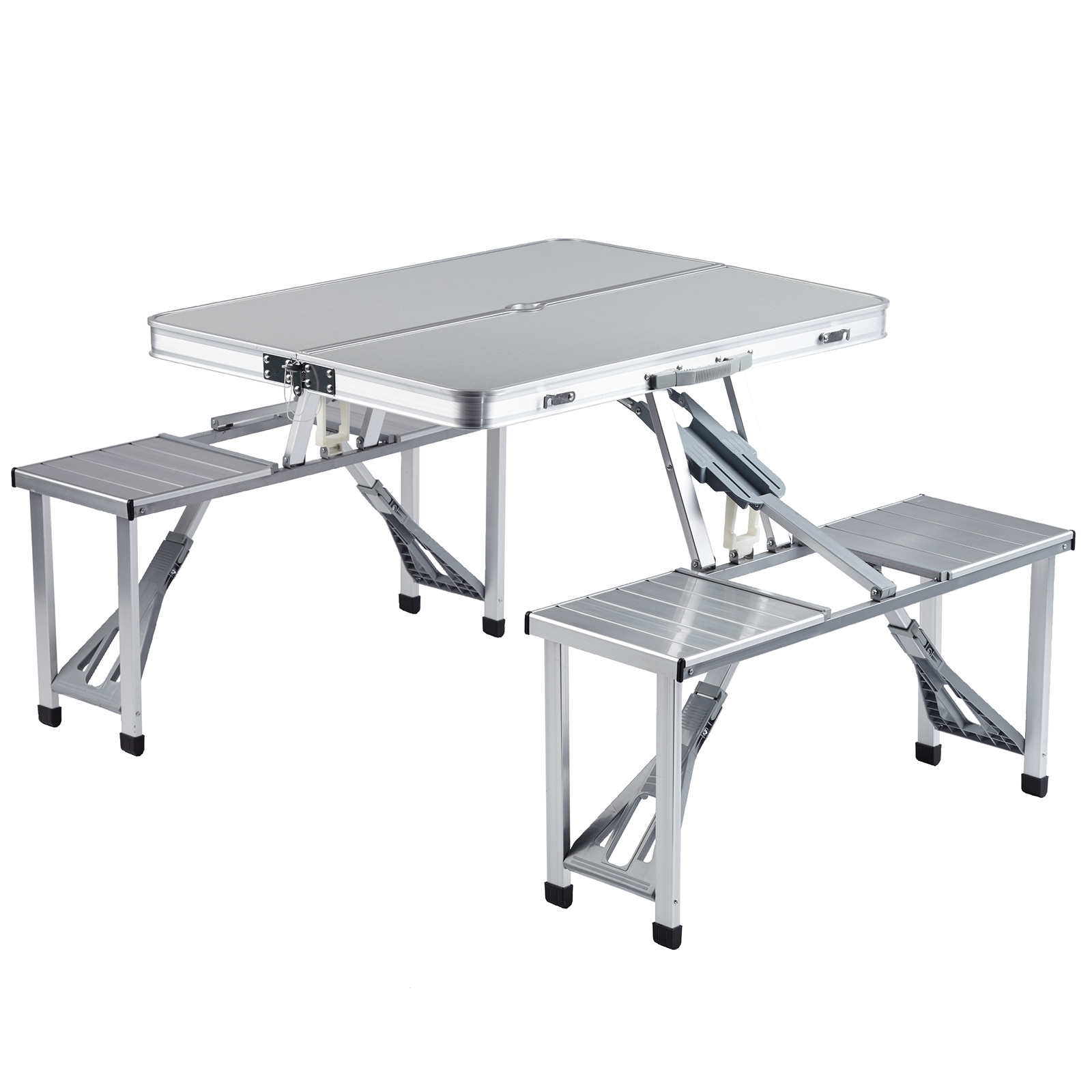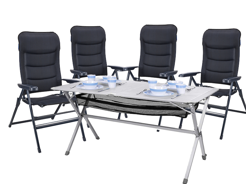 Perfekt für den nächsten Campingausflug! Dieses Tisch-Set aus Aluminium ist super leicht und klappt komplett zusammen - nimmt kaum Platz im Kofferraum weg.