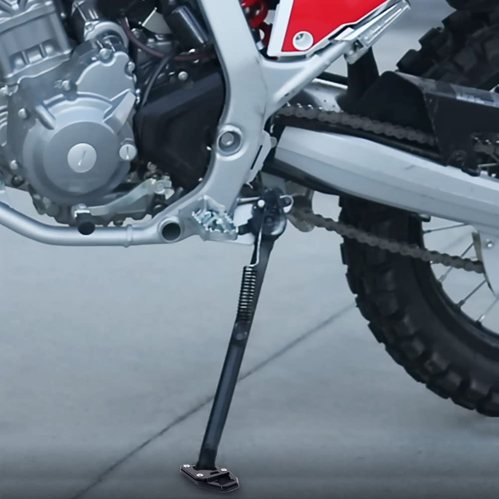 Perfekt für alle CRF 300L Besitzer! Diese coole Ständerverlängerung aus CNC-gefräster Aluminiumlegierung gibt deinem Bike endlich den nötigen Halt. Besonders auf weichem Untergrund verhindert das vergrößerte Fußpad das lästige Einsinken des Seitenständers. Das rutschfeste Design mit den konkaven und konvexen Strukturen an der Unterseite sorgt für bombenfeste Standsicherheit. Einfach montiert und sieht dazu noch mega stylisch aus - als ob sie serienmäßig dazugehören würde. Passt genau für die CRF300L Modelle von 2020 bis 2022. Kein Wackeln mehr beim Parken, und dein Bike steht sicher wie ein Fels in der Brandung!