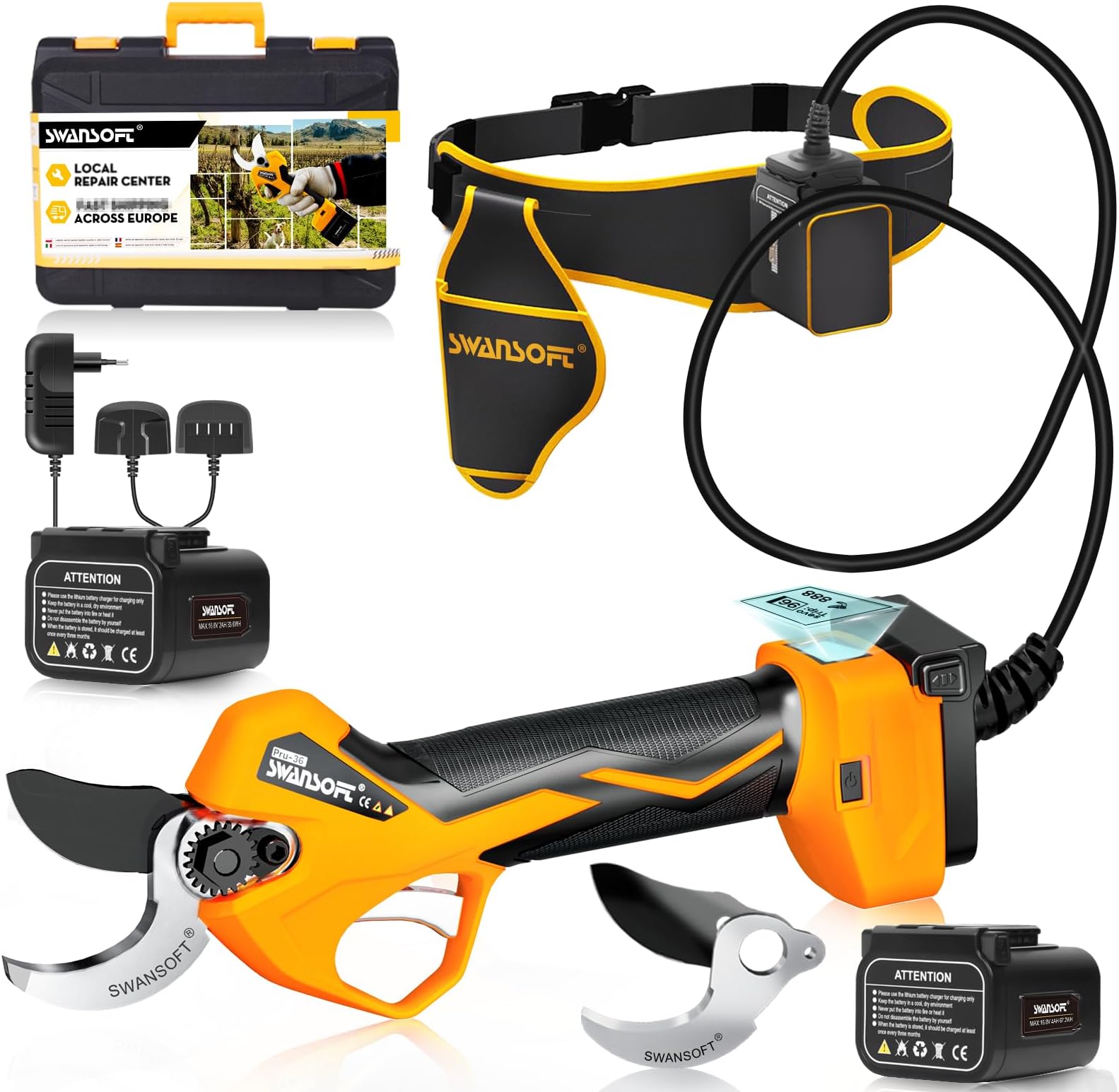 Boah, diese Astschere hat richtig Power! Mit dem bürstenlosen 1050W-Motor und dem Schweizer SK5-Messer schneidet sie mühelos Äste bis 40mm Durchmesser - und das komplett kabellos! Die zwei 25,2V/4Ah Akkus schaffen über 10.000 Schnitte, eine lädt während die andere arbeitet. Der 90cm lange Aluminium-Stab ist superleicht und reduziert die Ermüdung - perfekt für hohe Äste! Du kannst zwischen 25mm und 40mm Schnittdurchmesser wählen und die Klinge hält in jedem Winkel. Ideal für Obstbau, Gartenarbeit oder professionellen Einsatz. Das Kühlsystem verlängert die Lebensdauer und reduziert Wartung. Im inkludierten Werkzeugkoffer ist alles sicher verstaut. Mit 1-2 Jahren Garantie bist du auf der sicheren Seite. Endlich Schluss mit anstrengendem manuellem Schneiden - diese Schere macht Baum- und Gartenarbeit zum Kinderspiel! Einfach einschalten und Äste wie Butter durchschneiden - das ist modernes Gärtnern!