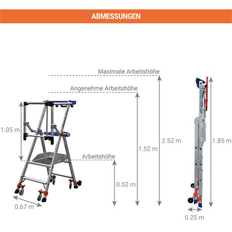 Gefertigt aus hochwertigem Aluminium ist sie super leicht zu tragen, aber trotzdem mega stabil. Bis zu 150 kg trägt sie problemlos - da kannst du auch mit Werkzeugkiste hochsteigen ohne Bedenken.