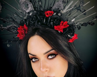 Hrlace Halo Stirnband Mit Stachelkrone | Göttin Kopfschmuck | Renaissance Cosplay | Schwarz & Gold