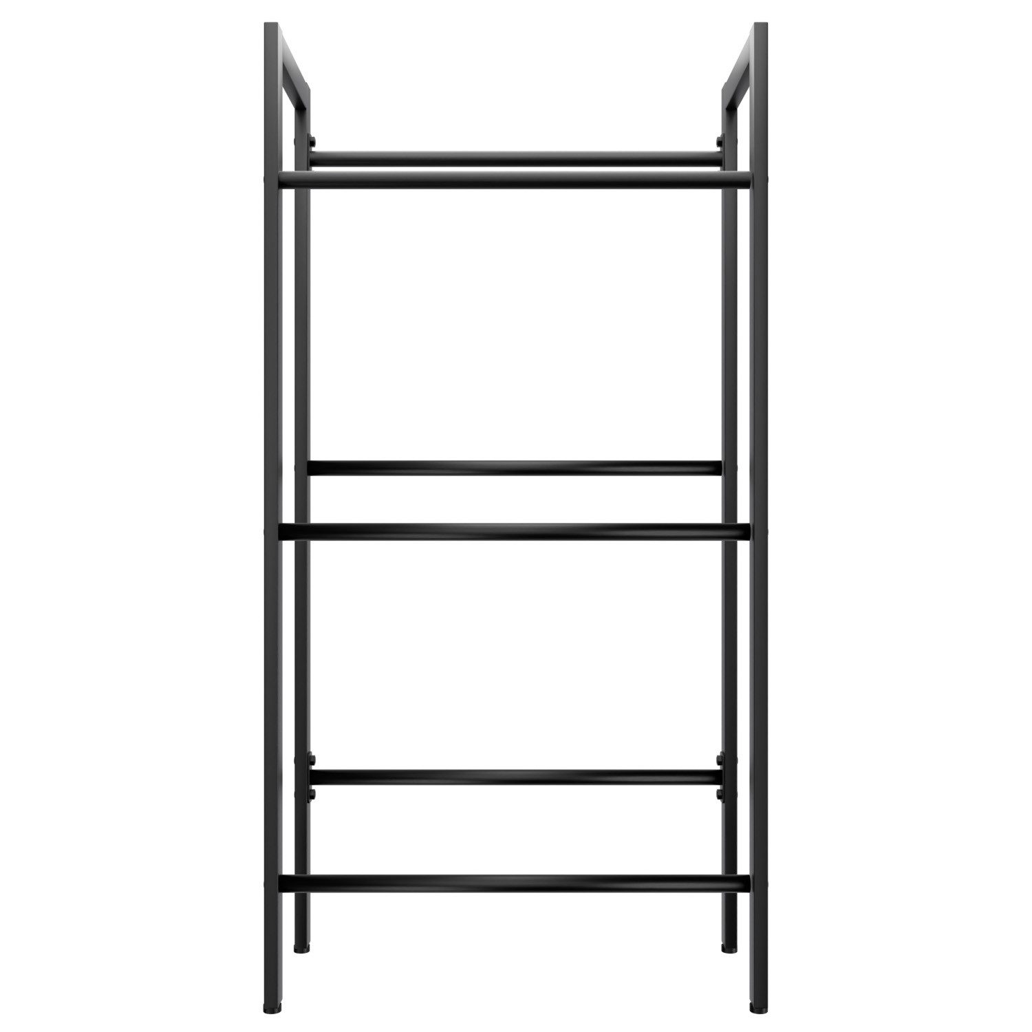 Die schwarze Pulverbeschichtung sieht nicht nur stylisch aus, sondern schützt auch vor Rost und Abnutzung. Besonders clever: Die leicht geneigten Ablageflächen machen das Ein- und Ausräumen von Kisten total easy.