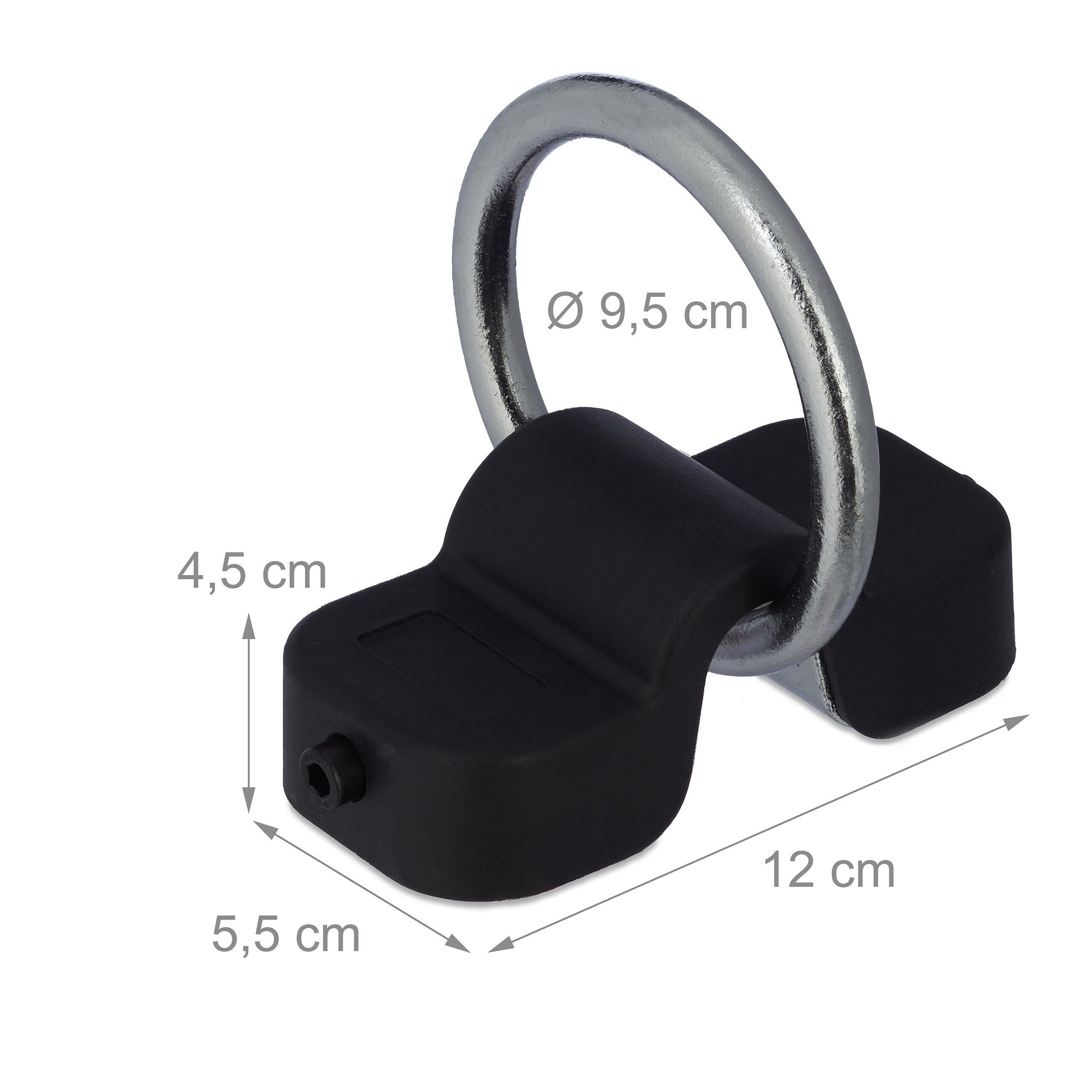 Große Öffnung für fast alle Kettenschlösser. Einfache Montage: Löcher bohren, Schrauben eindrehen, Nägel einschlagen. Für Wand und Boden geeignet.