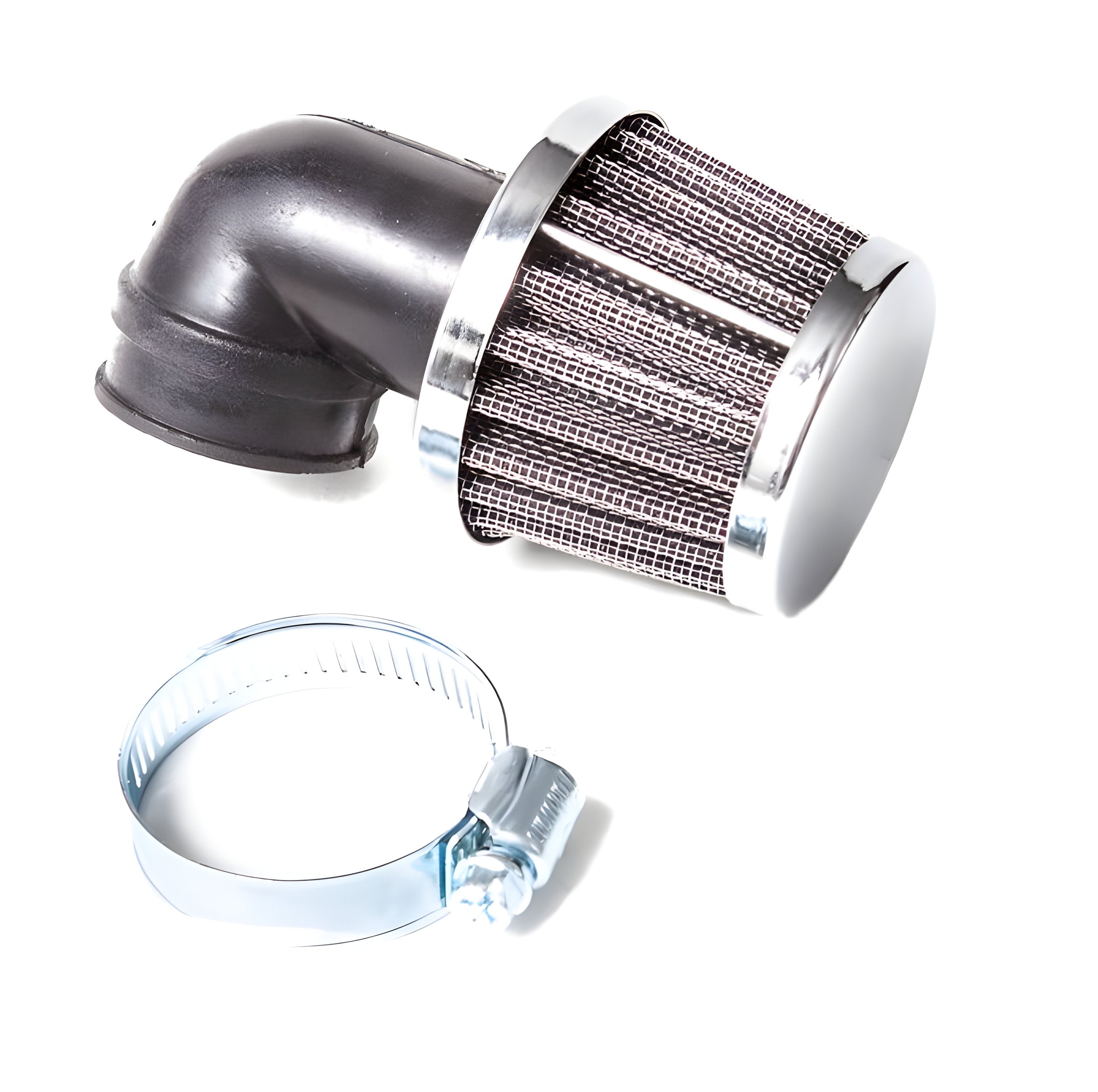 Für mehr Power und coolen Look! Dieser TNT Racing Luftfilter aus Stahlgewebe sorgt für maximalen Luftdurchlass und gibt deinem Bike oder Auto den letzten Schliff. Mit 90 Grad Winkel und Anschlüssen für 28mm bzw. 35mm - passt auf die meisten 10, 12 und 17,5mm Vergaser. Der Carbon-Look sieht einfach mega aus und das Preis-Leistungs-Verhältnis ist unschlagbar. Wichtig: Vergiss nicht, die Vergaserbedüsung an den erhöhten Luftdurchsatz anzupassen, sonst läuft dein Motor nicht optimal. Erhältlich in verschiedenen Farben - such dir deine Lieblingsfarbe aus! Perfekt für alle Tuning-Fans, die ihrem Gefährt mehr Performance und Style verpassen wollen. Einfach montieren und sofort den Unterschied spüren. Auch geeignet für ATU und Explorer Race 50. Mach dein Fahrzeug fit für die Straße - mit diesem qualitativ hochwertigen Sportluftfilter. Ein Muss für jeden, der was auf sein Fahrzeug hält und nicht das Standard-Zubehör fahren will!