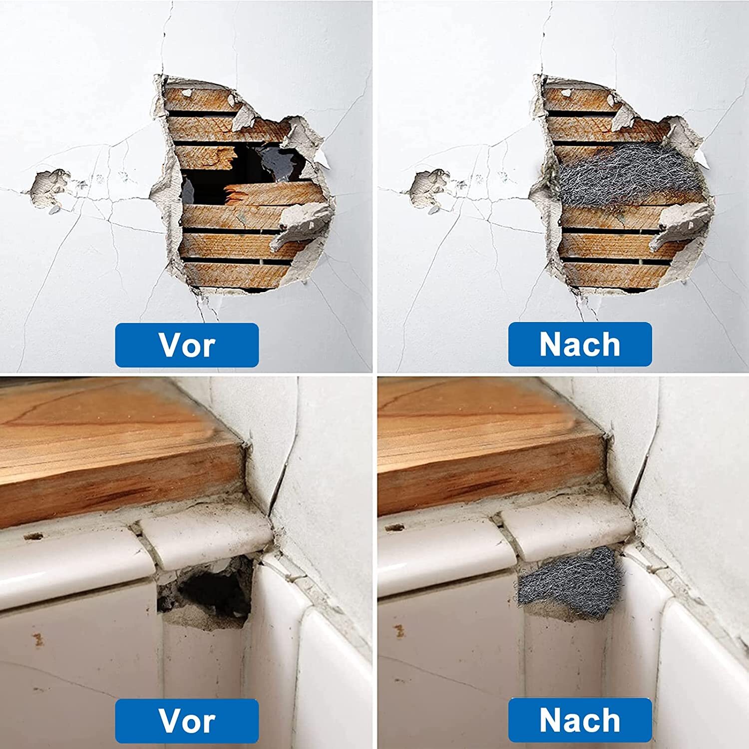 Mäuse im Haus? Diese Stahlwolle ist deine Rettung! Einfach in Löcher, Ritzen und um Rohre stopfen - die scharfen Fasern können Mäuse und Ratten nicht durchkauen, aber Luft kommt trotzdem durch. Das 0000# Material ist superfein und flexibel, passt in jede noch so kleine Öffnung. Im Set: 2 Stahlwolle-Pads, Arbeitshandschuhe und Schere zum Zuschneiden. Perfekt für Garagen, Küchen, Dachböden oder Rohrdurchführungen. Die Wiederverwendbar und rostbeständig - haltbarer als herkömmliche Dichtungen. Einfach zuschneiden, einklemmen und die Nagetiere bleiben draußen! Auch super zum Polieren von Metall oder Entrosten. Umweltfreundlich und ohne Chemie - so schützt du dein Zuhause natürlich. Endlich Ruhe vor ungebetenen Nagergästen! Einfach anwenden und sich sicher fühlen.