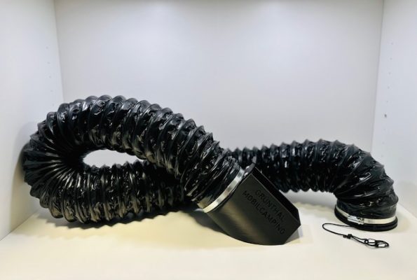 Einfach an der Jalousienschiene einhängen (aber Achtung: erst ab der zweiten Leiste!), und schon kannst du deine Standheizung auch auf Stufe 10 laufen lassen. Das spezielle Material hält das problemlos aus. Das Gitter verhindert, dass was in den Schlauch fällt.