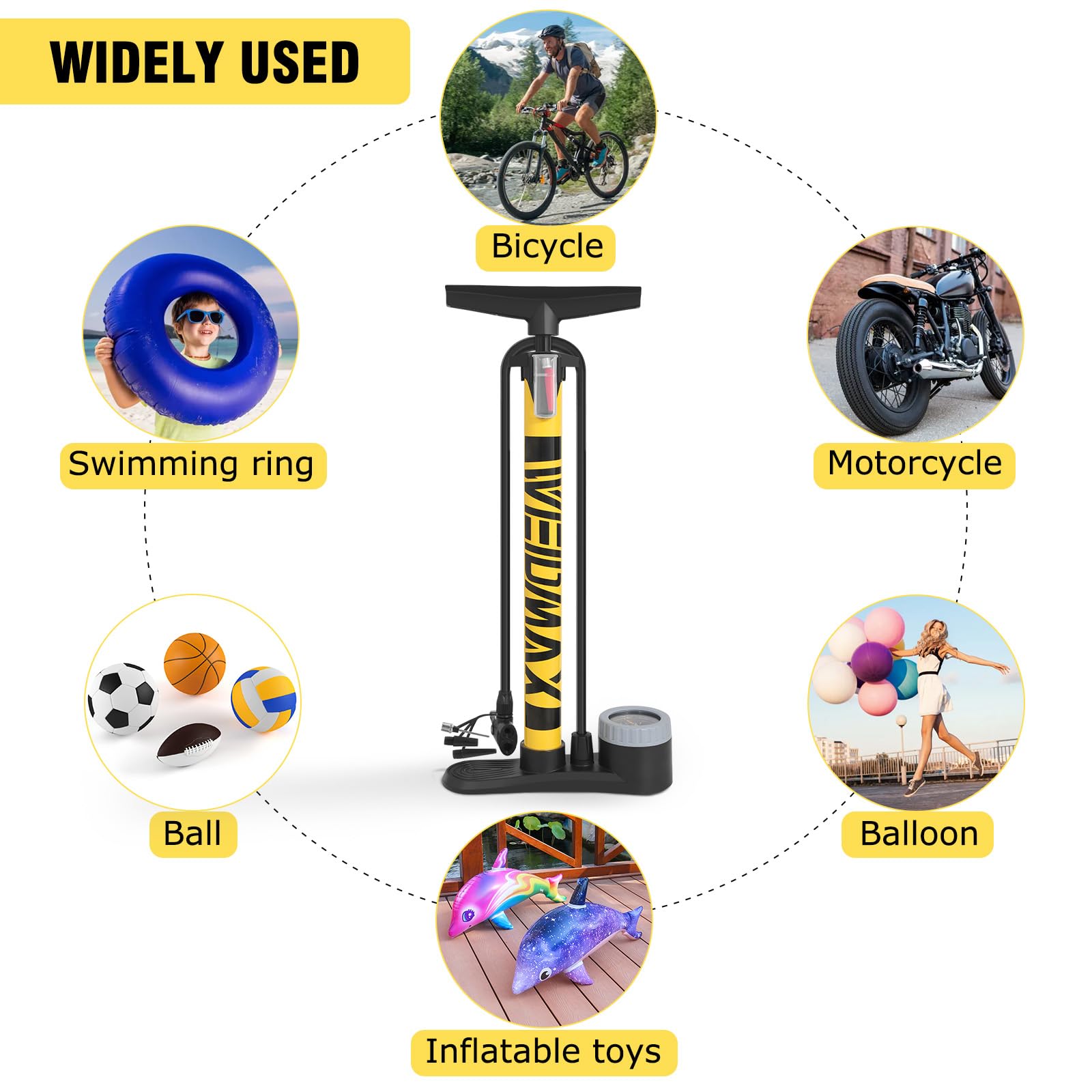 Diese Mini-Fahrradpumpe von WEIDMAX ist dein Retter in der Not! Super kompakt und leicht - passt in jeden Rucksack. Mit bis zu 120 PSI Druck für deine Fahrradreifen. Der Clou: Sie passt auf beide Ventil-Typen - Presta UND Schrader. Einfach umstellen und lospumpen! Aus hochfestem Stahl und Kunststoff gebaut, hält sie echt was aus. Der ergonomische Griff liegt super in der Hand. Damit pumpst du nicht nur Fahrradreifen auf, sondern auch Bälle, Schwimmringe oder Luftmatratzen. Perfekt für unterwegs - ob auf Radtour, beim Camping oder einfach im Alltag. Für Erwachsene und Kinder gleichermaßen geeignet. Einfach unverzichtbar für alle Outdoor-Fans!
