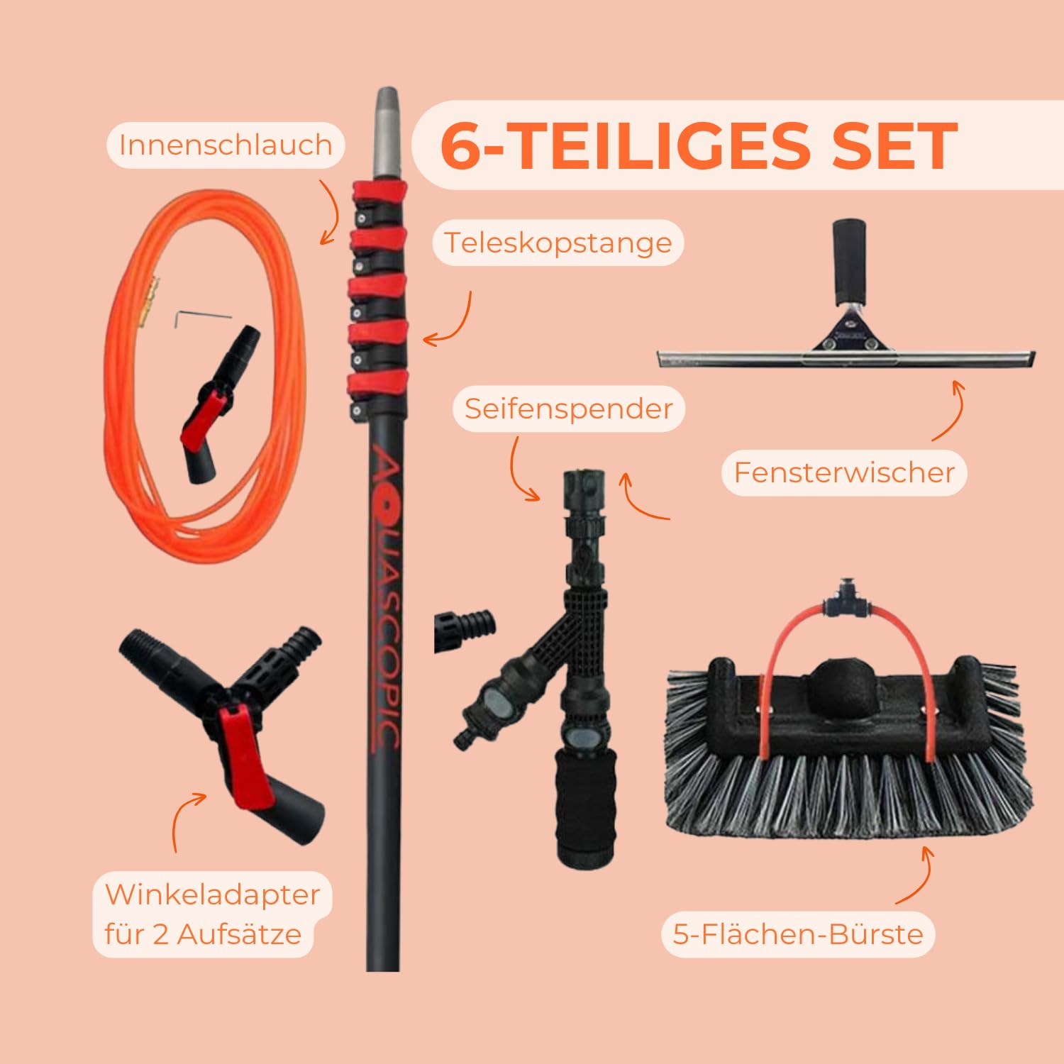 Perfekt für Fenster, Solaranlagen, Fassaden, Dachrinnen oder Auto-Wasch. Leicht aber stabil, korrosionsbeständig und witterungsbeständig. Professionelle Reinigungsergebnisse ohne Leiter - sicher und effektiv!