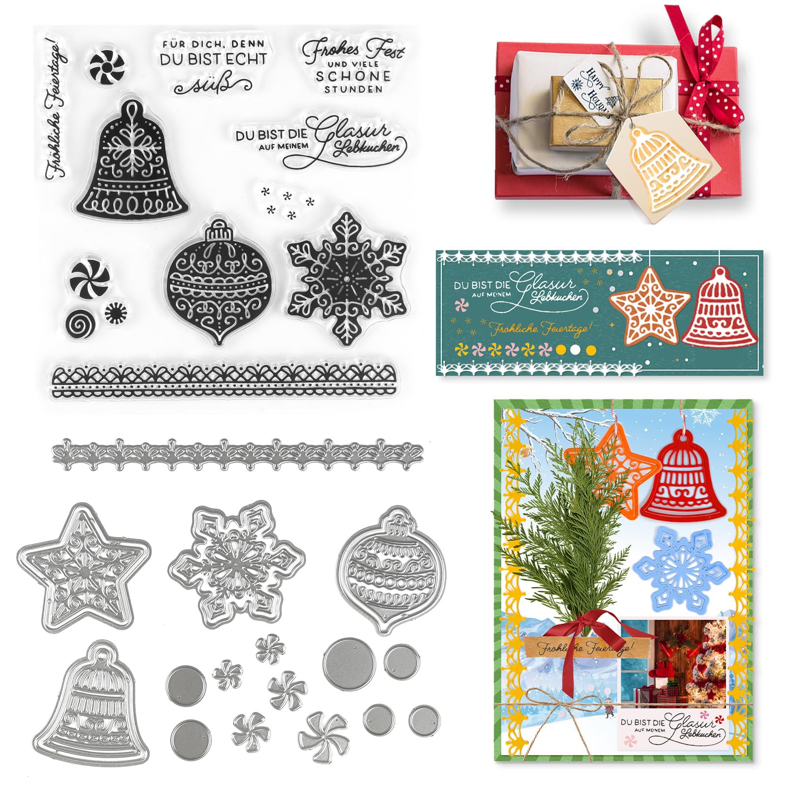 Bastelstunde für die schönste Zeit des Jahres! Dieses komplett Set mit transparenten Silikon-Stempeln und passenden Stanzformen bringt Weihnachtsstimmung auf deine selbstgemachten Karten und Geschenkanhänger. Mit niedlichen Wichteln, dem Weihnachtsmann, Schneemännern und winterlichen Häusern - alles, was das Herz begehrt. Die Stempel haften perfekt auf Acrylblöcken und die Stanzformen aus Kohlenstoffstahl schneiden präzise auch durch dickeres Papier. Perfekt für Scrapbooking, Kartenbasteln oder zur Dekoration von Geschenken. Ein wunderbares Geschenk für kreative Seelen, die die Weihnachtszeit persönlich und handgemacht gestalten wollen.