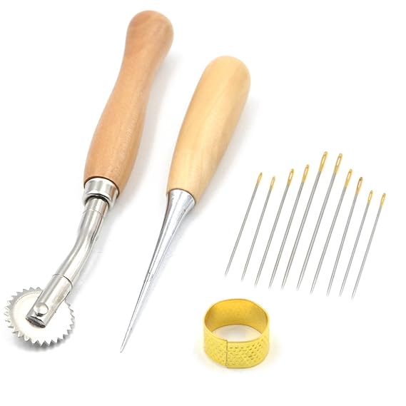 Stanzroll-Werkzeug Set - Perforierwerkzeug Mit Holzgriff Für Leder & Papier