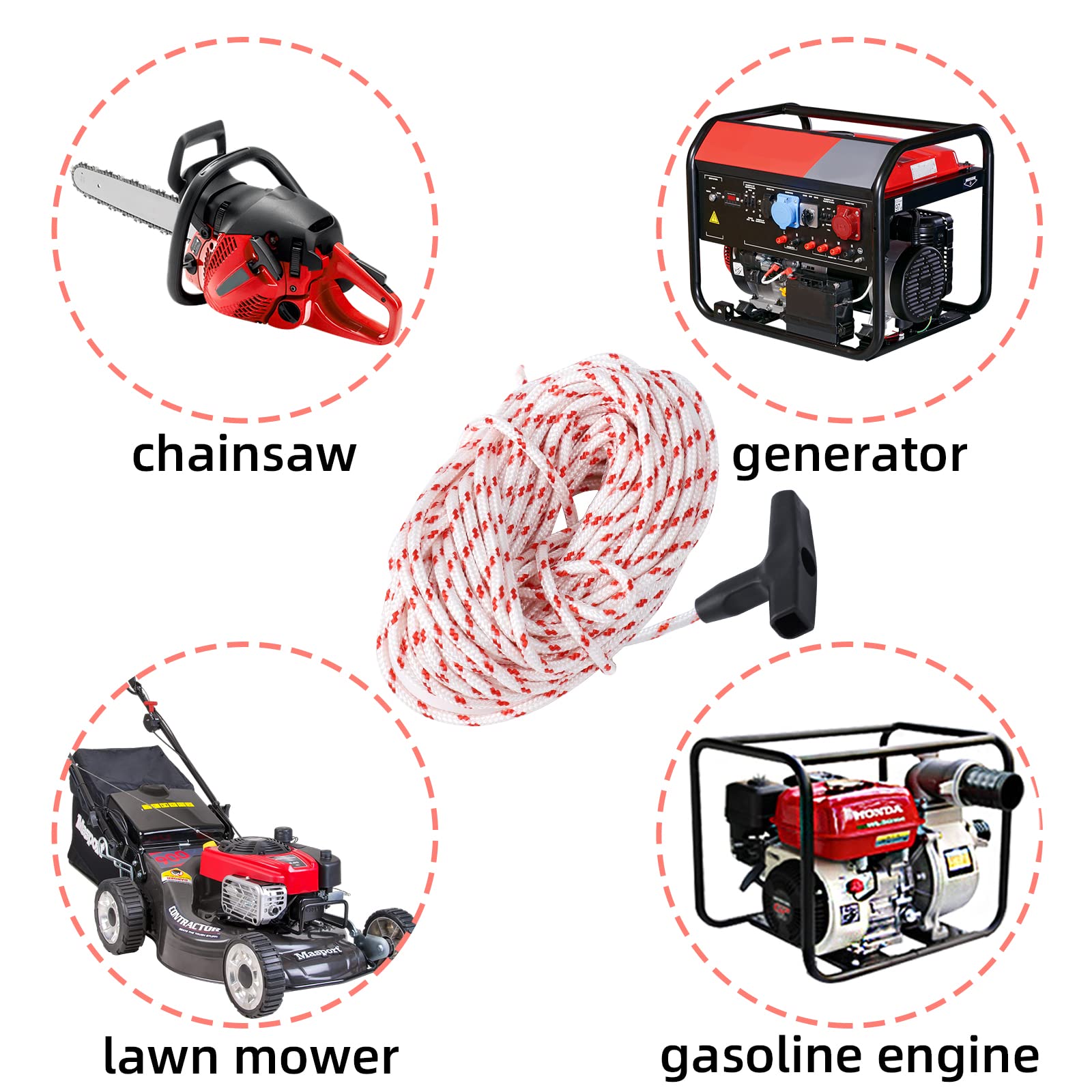 Starterseil 10 Meter 4.0mm Für Rasenmäher & Gartengeräte - Inkl. 4 Griffe