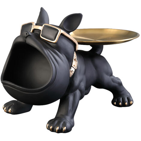 Französische Bulldogge Statue Aus Kunstharz - Süßigkeitenschale & Schlüsselhalter In Schwarz
