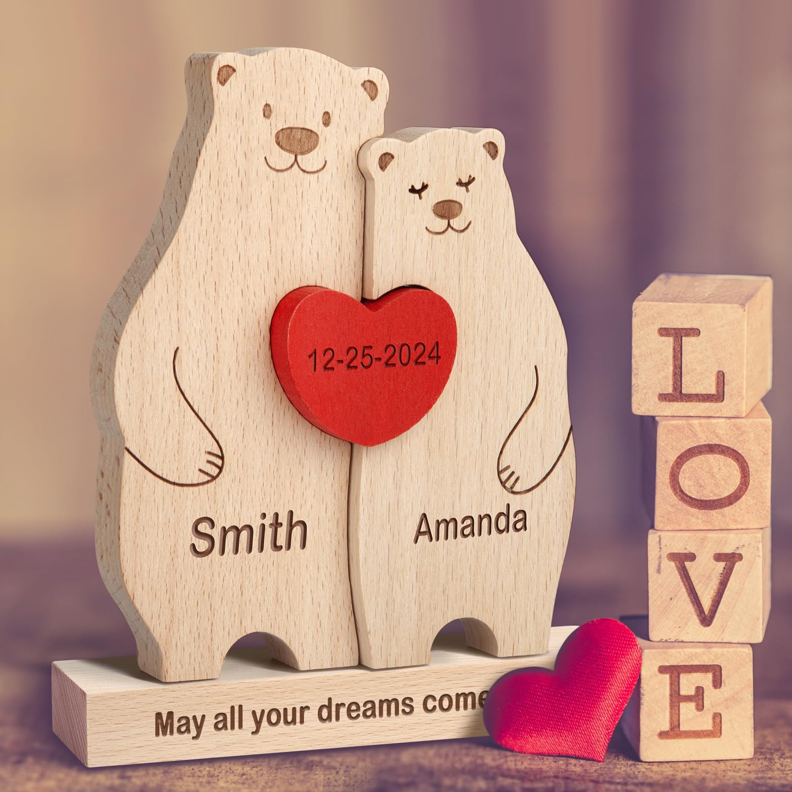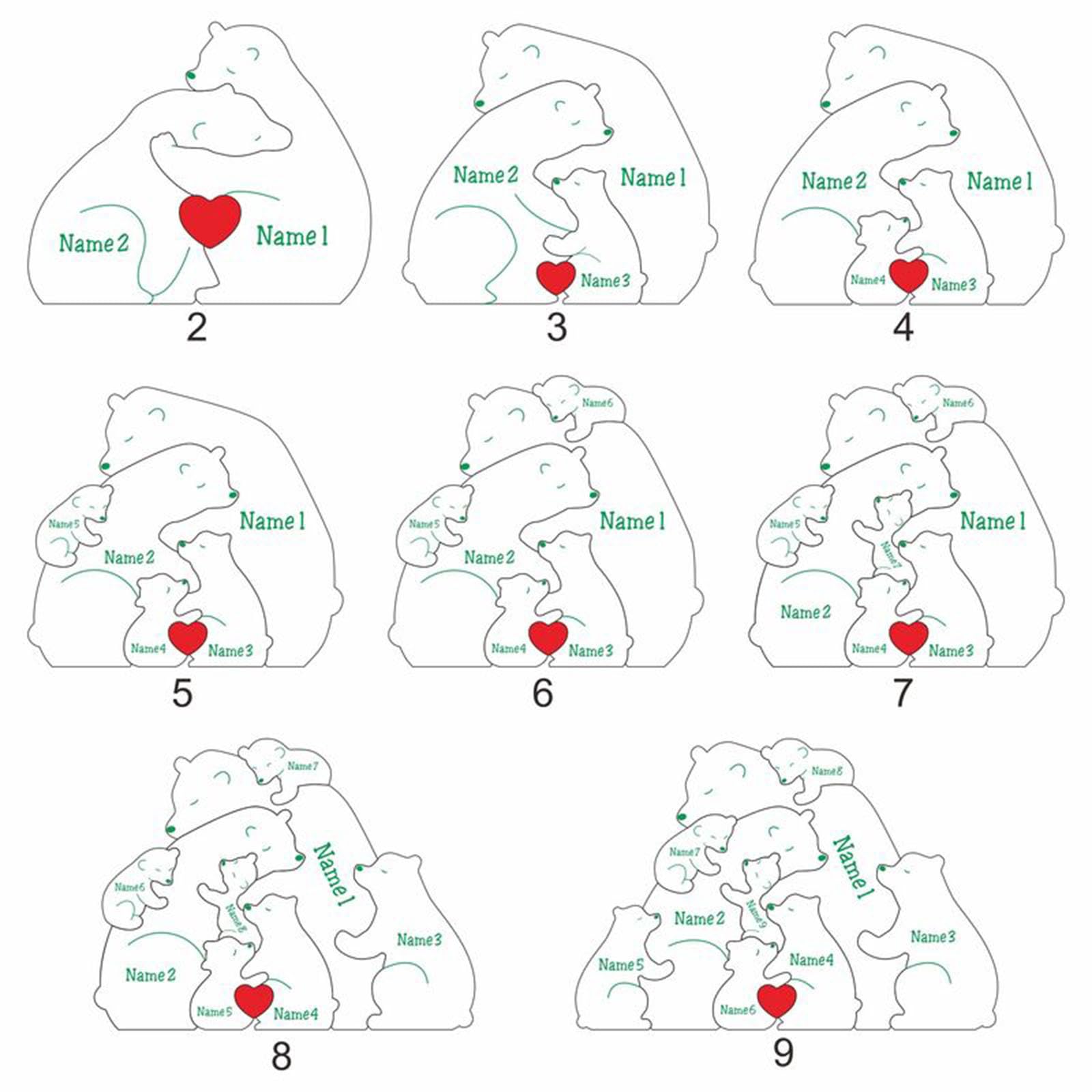 Drawelry Personalisiertes Holzpuzzle Tier Statue - Bär Skulptur Mit 2-9 Namen Gravur