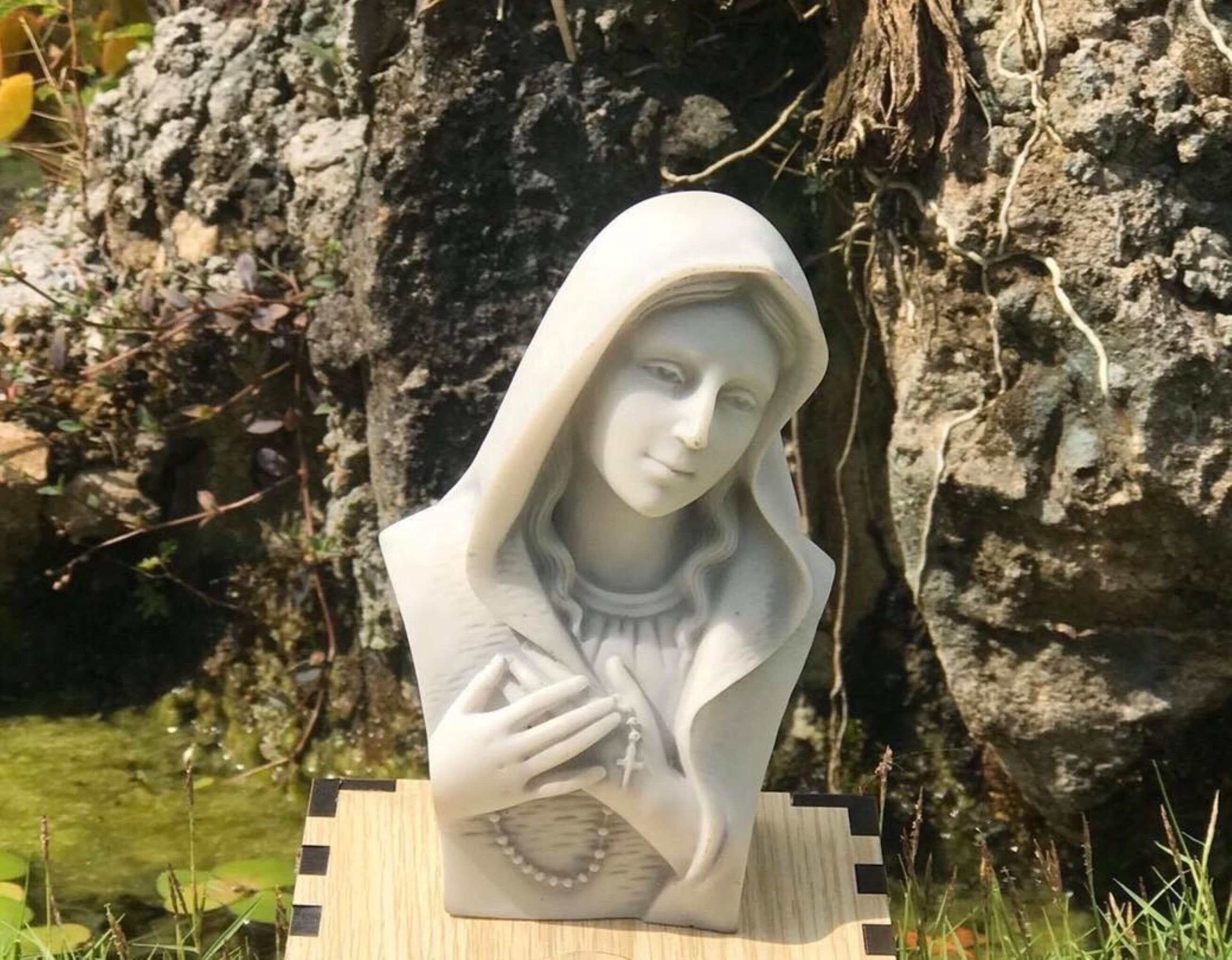 Eine wunderschöne Statue der Jungfrau Maria als Rosenkranzhalter! Diese kunstvoll gearbeitete Figur im Design \Our Lady of Grace\ ist nicht nur ein spiritueller Blickfang, sondern auch praktisch - sie dient als Aufbewahrung für deinen Rosenkranz. Aus hochwertigem Harz gefertigt, mit liebevollen Details und in zarten Farben gestaltet. Mit 12x12 cm ist sie kompakt genug für jeden Gebetstisch, Nachttisch oder jede Andachtsecke. Die stabile Ausführung garantiert, dass die Statue ihren Glanz und ihre Eleganz lange behält. Perfekt für zu Hause, im Gebetsraum oder als besonderes Geschenk zu Weihnachten, Ostern, Taufen oder anderen religiösen Anlässen. Diese Maria-Statue verbindet auf wunderbare Weise Glauben, Kunst und Praktikabilität. Ein Stück, das Ruhe und Besinnung in deine vier Wände bringt.