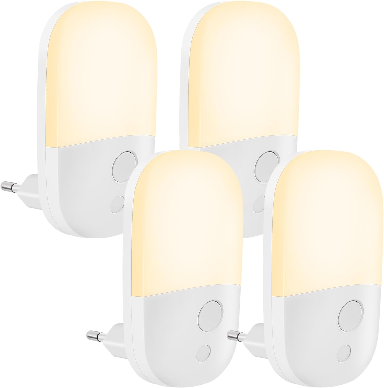 Dieses 2er-Set Nachtlichter ist super praktisch für jedes Zuhause! Einfach in die Steckdose stecken und du kannst zwischen AUTO (mit Dämmerungssensor), Dauer-EIN und AUS wählen. Die Helligkeit ist stufenlos dimmbar von 0-100%, das warmweiße Licht (3000K) ist angenehm für die Augen. Besonderes Feature: Es leuchtet nach oben und unten, verteilt das Licht super. Verbraucht nur 1 Watt - super energiesparend! Perfekt für Kinderzimmer, Flur, Treppe oder Bad. Aus hochwertigem Material mit Sicherheitsschutz. Einfach mal ausprobieren - du wirst sehen, wie praktisch das ist!